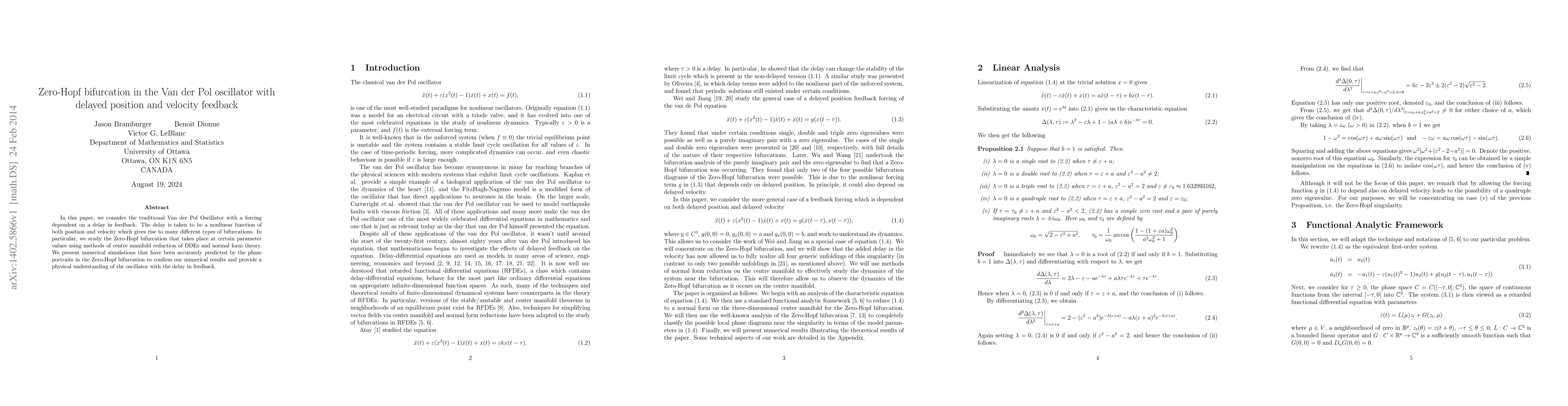 This paper investigates the Zero-Hopf bifurcation in the Van der Pol Oscillator with delayed feedback dependent on both position and velocity, employing centre manifold reduction and normal form theory. Numerical simulations confirm the theoretical predictions and elucidate the physical behavior of the oscillator under these conditions.