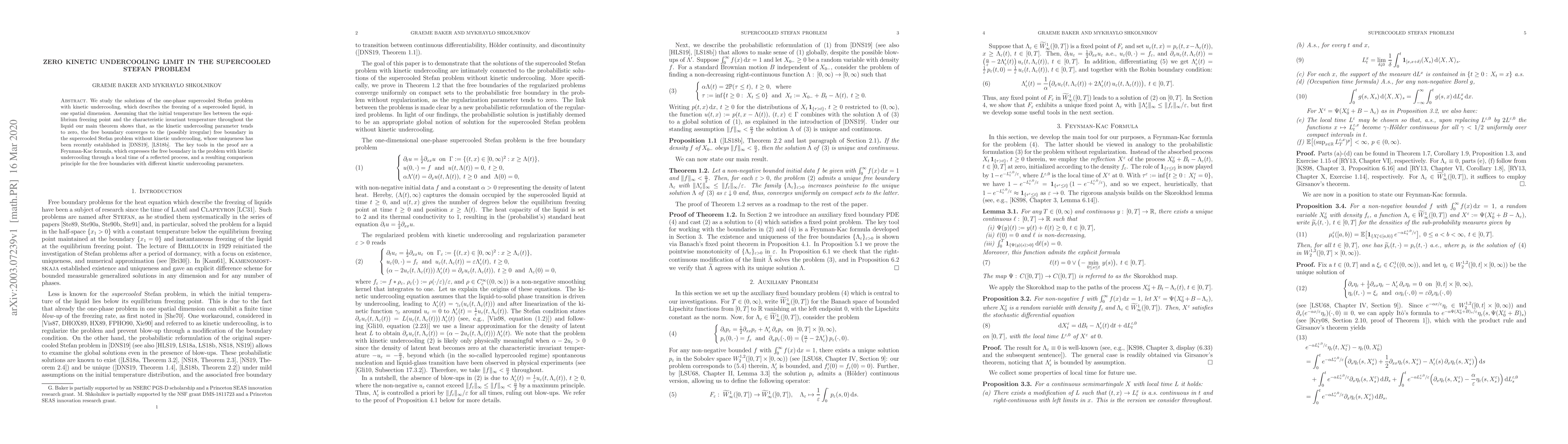 This paper explores the one-dimensional supercooled Stefan problem with kinetic undercooling, demonstrating that as the kinetic undercooling parameter approaches zero, the free boundary converges to that of the problem without kinetic undercooling. The proof utilizes a Feynman-Kac formula and a comparison principle for free boundaries.