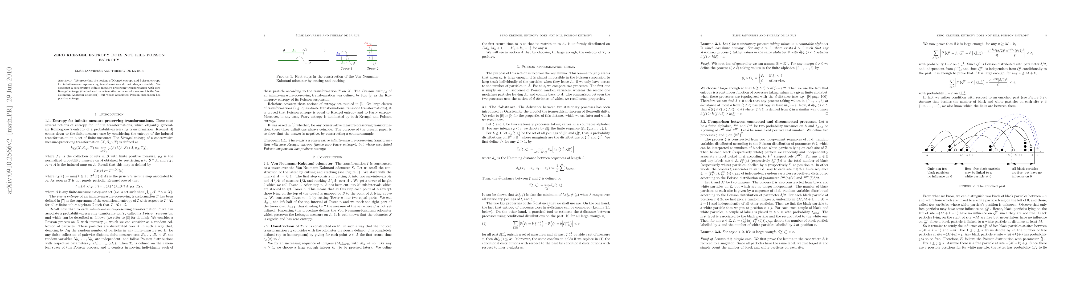 Researchers have found a case where a transformation has zero Krengel entropy but positive Poisson entropy, contradicting the idea that these two measures coincide for conservative transformations.