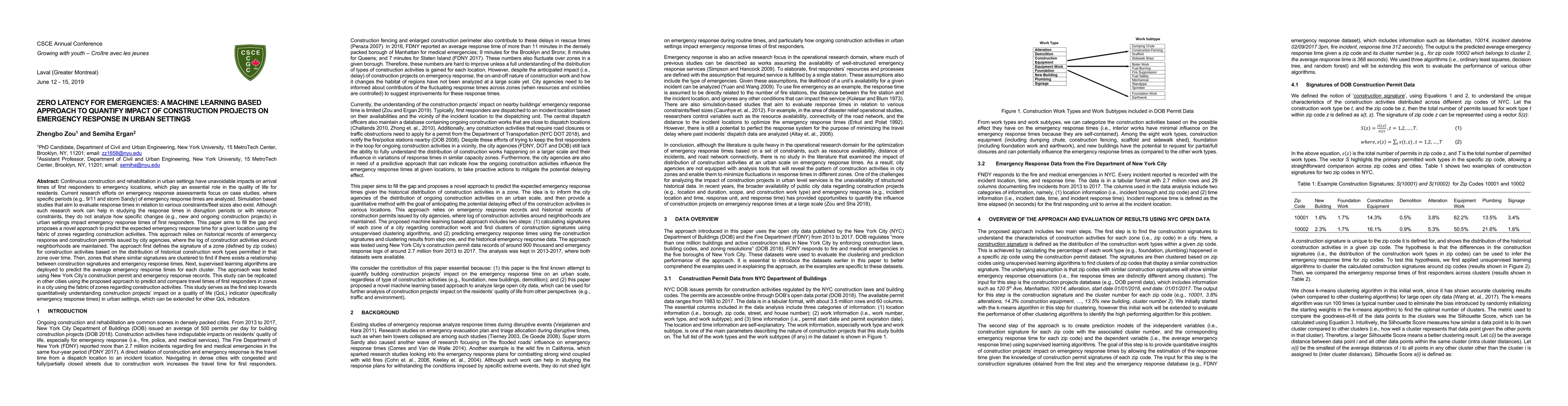 A machine learning approach predicts emergency response times in urban areas based on construction activity patterns, improving understanding of construction projects' impact on emergency services.