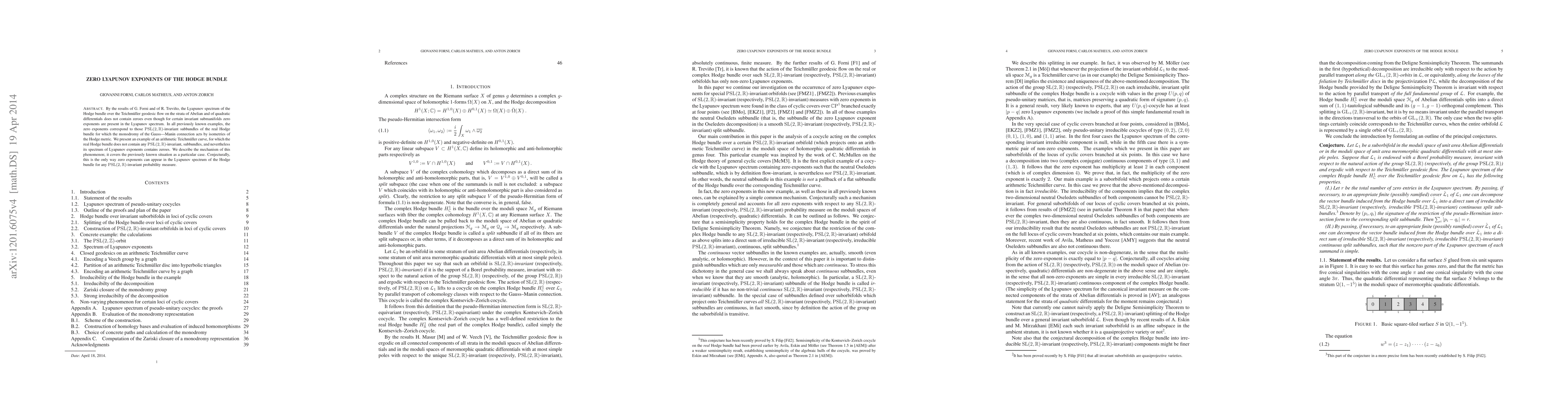 This paper presents an example where zero Lyapunov exponents appear in the Hodge bundle's spectrum despite the absence of PSL(2,R)-invariant subbundles, challenging prior understanding. The authors propose a mechanism explaining this phenomenon and conjecture that it is the sole method for zero exponents in such spectra.