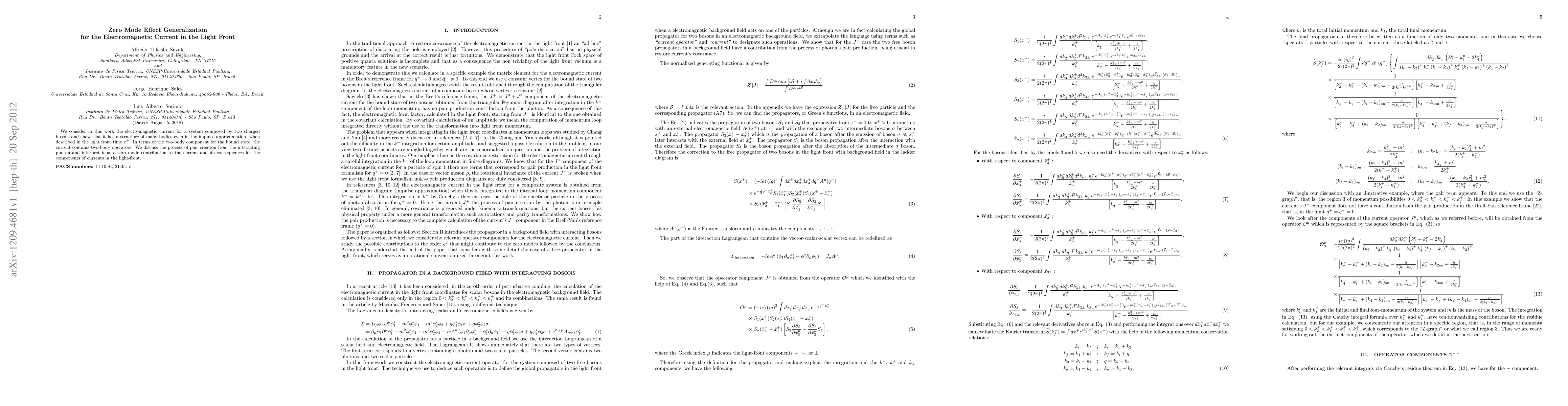 This paper generalizes the zero mode effect for the electromagnetic current in a system of two charged bosons, showing that it retains a many-body structure even in the impulse approximation on the light front. It interprets pair creation from the interacting photon as a zero mode contribution, impacting the current components in the light-front framework.