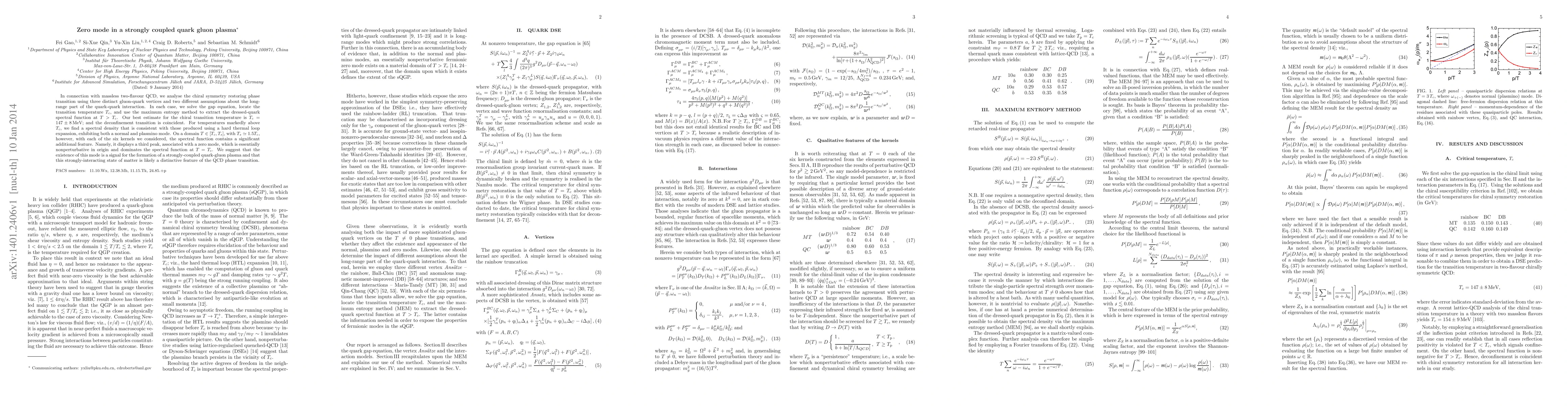 In connection with massless two-flavour QCD, we analyse the chiral symmetry restoring phase transition using three distinct gluon-quark vertices and two different assumptions about the long-range part of the quark-quark interaction. In each case, we solve the gap equation, locate the transition temperature T_c, and use the maximum entropy method to extract the dressed-quark spectral function at T>T_c. Our best estimate for the chiral transition temperature is T_c=(147 +/- 8)MeV; and the deconfinement transition is coincident. For temperatures markedly above T_c, we find a spectral density that is consistent with those produced using a hard thermal loop expansion, exhibiting both a normal and plasmino mode. On a domain T\in[T_c,T_s], with T_s approximately 1.5T_c, however, with each of the six kernels we considered, the spectral function contains a significant additional feature. Namely, it displays a third peak, associated with a zero mode, which is essentially nonperturbative in origin and dominates the spectral function at T=T_c. We suggest that the existence of this mode is a signal for the formation of a strongly-coupled quark-gluon plasma and that this strongly-interacting state of matter is likely a distinctive feature of the QCD phase transition.