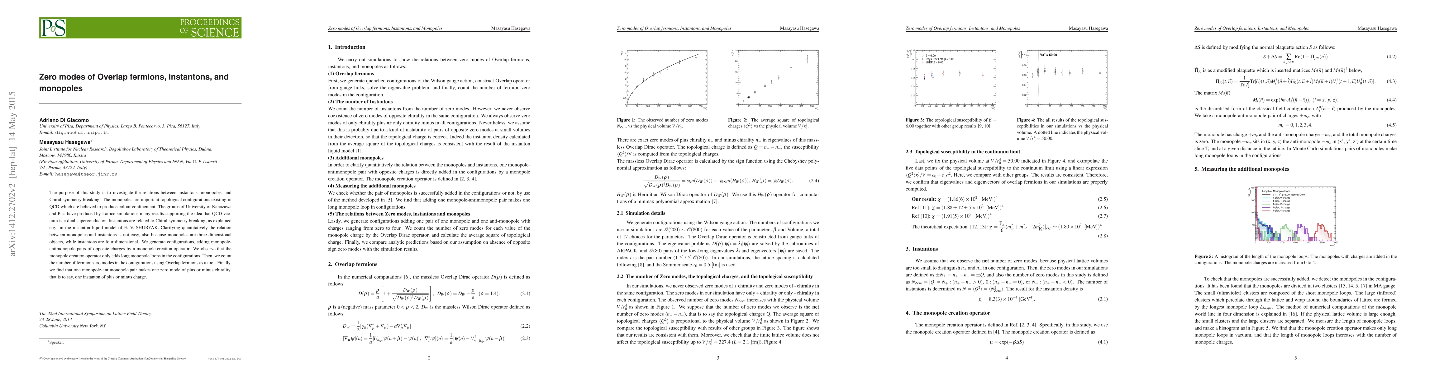 This study explores the connections between instantons, monopoles, and Chiral symmetry breaking in QCD, using lattice simulations to show that monopoles contribute to color confinement. It finds that monopole creation operators add long monopole loops and generates fermion zero modes via Overlap fermions, concluding that one monopole-antimonopole pair corresponds to one chirality zero mode, or instanton.