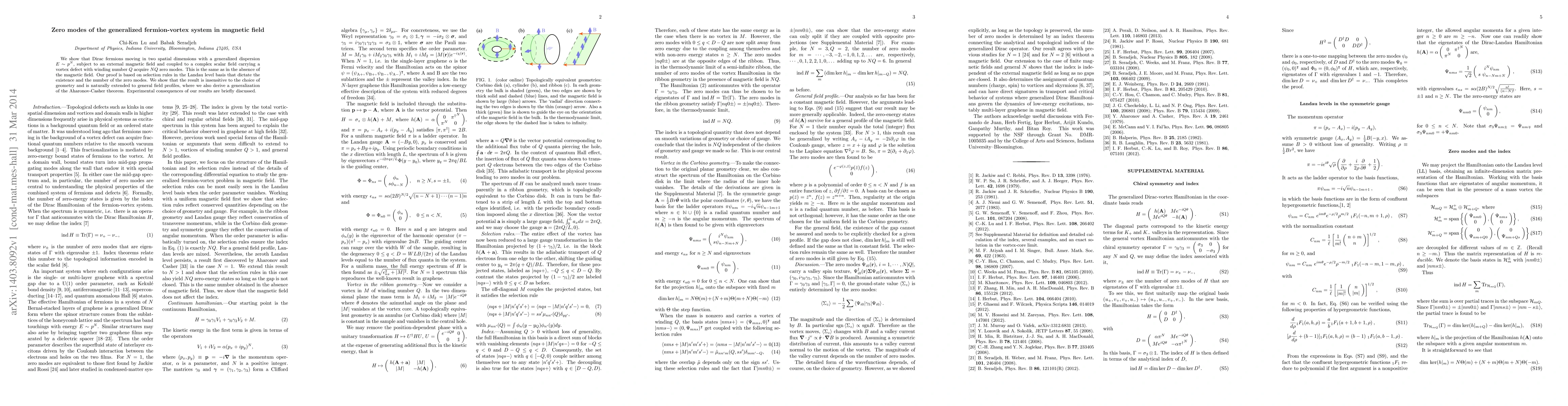 Research shows that Dirac fermions in 2D with a specific dispersion law acquire zero modes when coupled to a vortex defect in the presence of an external magnetic field, regardless of the magnetic field's strength or geometry.