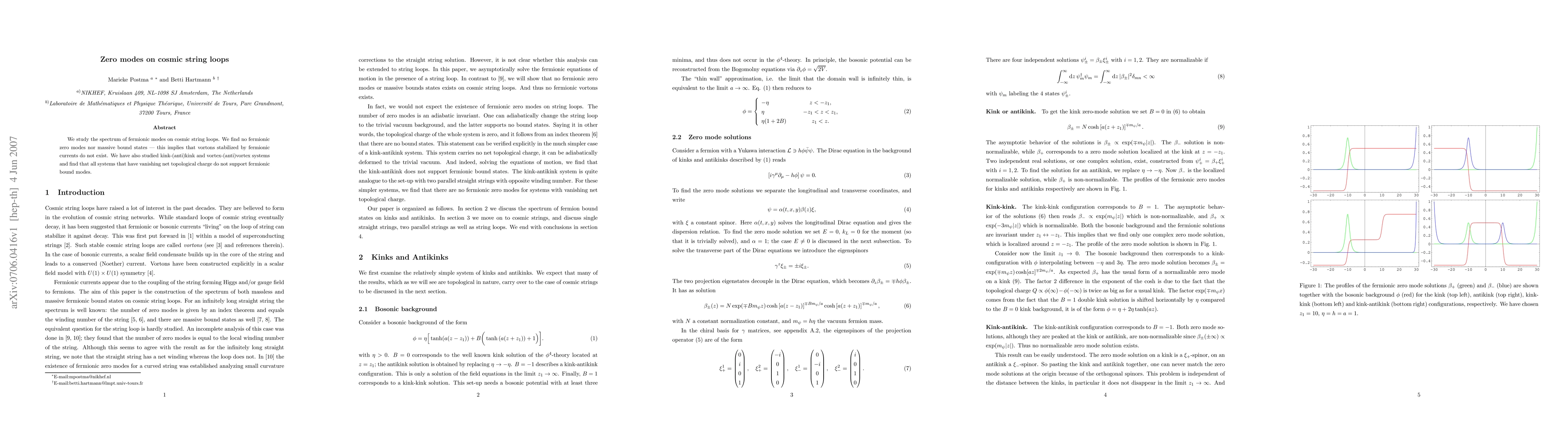 This paper investigates the spectrum of fermionic modes on cosmic string loops, concluding that no fermionic zero modes or massive bound states exist. Consequently, it finds that vortons stabilized by fermionic currents are not possible, and similarly, systems with zero net topological charge do not support fermionic bound modes.