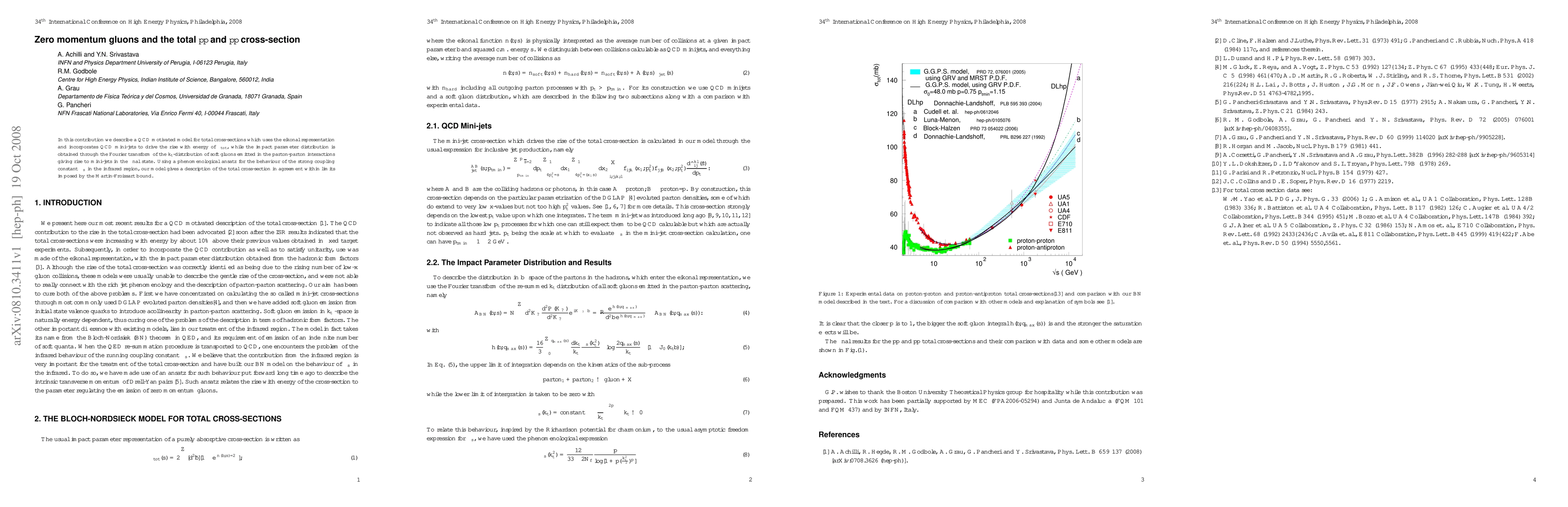 We describe a QCD motivated model for total cross-sections which uses the eikonal representation and incorporates QCD mini-jets to drive the rise with energy of the cross-section, while the impact parameter distribution is obtained through the Fourier transform of the transverse momentum distribution of soft gluons emitted in the parton-parton interactions giving rise to mini-jets in the final state. A singular but integral expression for the running coupling constant in the infrared region is part of this model.