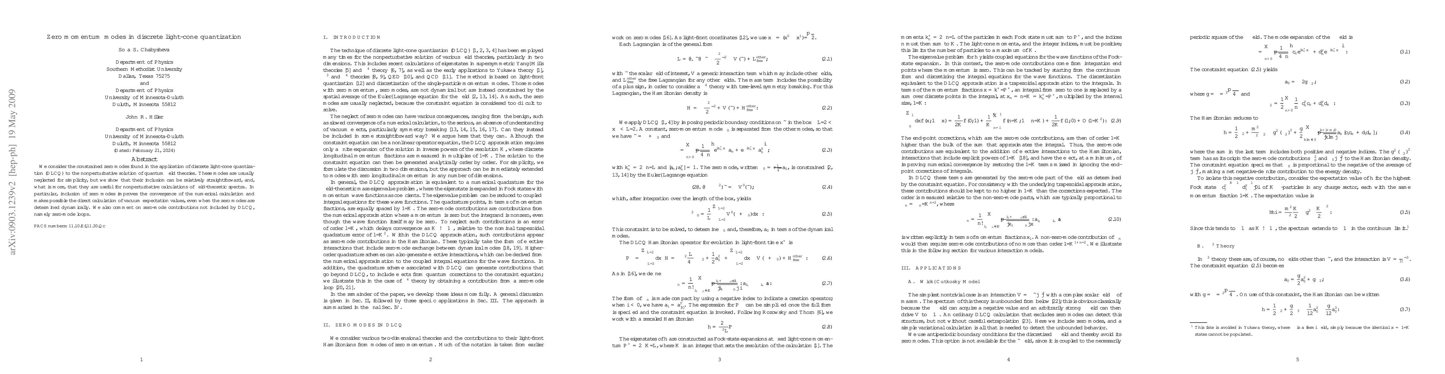 This paper explores the inclusion of constrained zero momentum modes in discrete light-cone quantization (DLCQ) for nonperturbative quantum field theory calculations, demonstrating their utility in improving numerical convergence and enabling the direct calculation of vacuum expectation values. It also discusses the implications of zero-mode loops not captured by DLCQ.