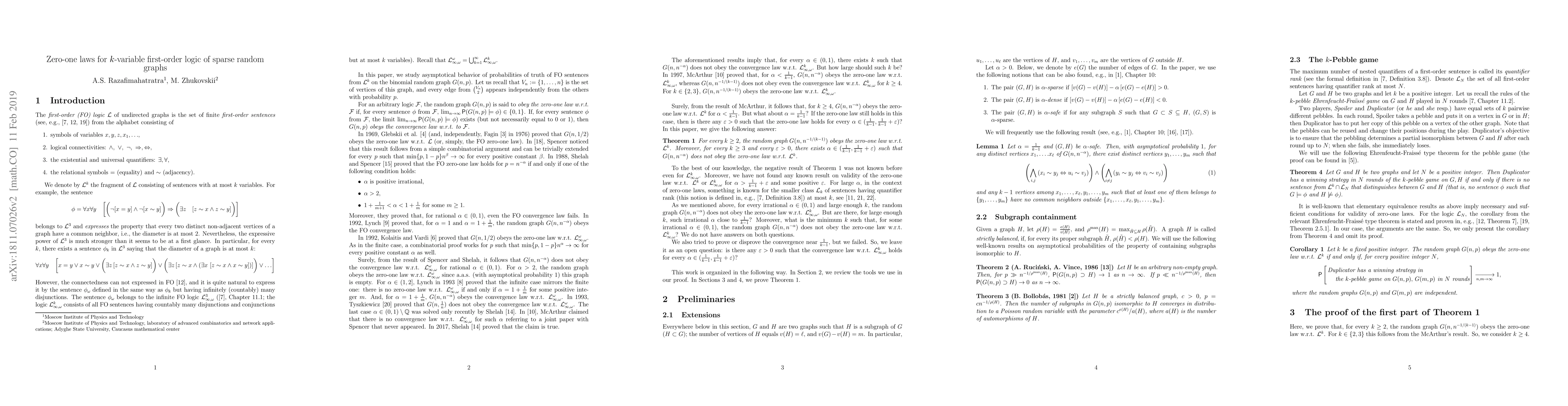 Researchers found that for sparse random graphs with k variables, some properties obey 0-1 laws while others do not, depending on the graph density parameter alpha. This challenges our understanding of logical behavior in such networks.