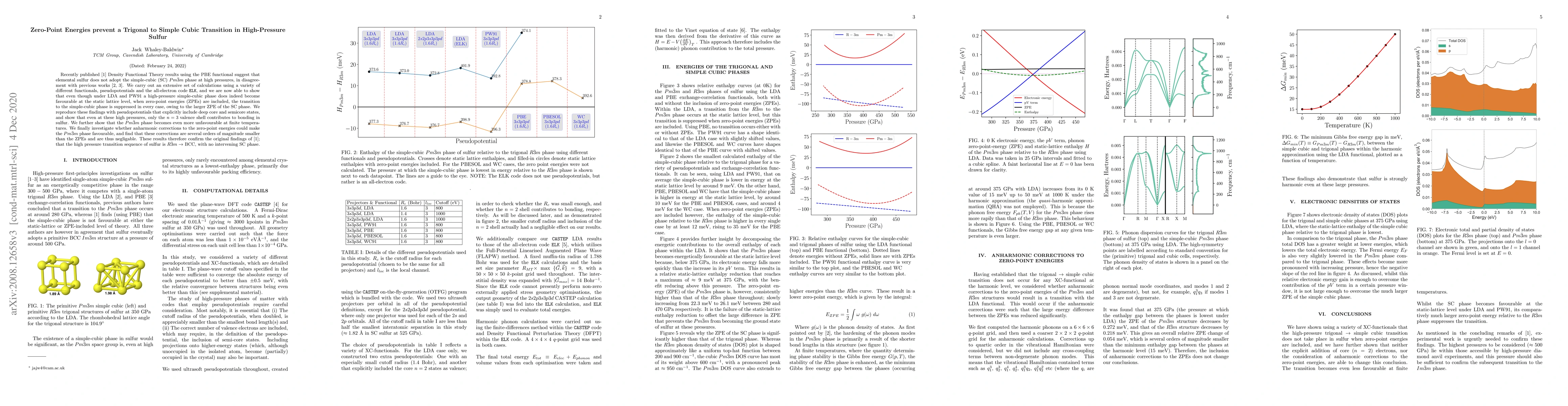 Recently published Density Functional Theory results from Whaley-Baldwin et. al. [New J. Phys. 22 023020, Feb 2020] using the PBE functional suggest that elemental sulfur does not adopt the simple-cubic (SC) $Pm\bar{3}m$ phase at high pressures, in disagreement with previous works on this system [Phys. Rev. Lett. 83, 3049, Oct 1999]. We carry out an extensive set of calculations using a variety of different XC-functionals, pseudopotentials and the all-electron code ELK, and we are now able to show that even though under LDA and PW91 a high-pressure simple-cubic phase does indeed become favourable at the static lattice level, when zero-point energies (ZPEs) are included, the transition to the simple-cubic phase is suppressed in every case, owing to the larger ZPE of the SC phase. We reproduce these findings with pseudopotentials that explicitly include deep core and semicore states, and show that even at these high pressures, only the $n=3$ valence shell contributes to bonding in sulfur. We further show that the $Pm\bar{3}m$ phase becomes even more unfavourable at finite temperatures. We finally investigate whether anharmonic corrections to the zero-point energies could make the $Pm\bar{3}m$ phase favourable, and find that these corrections are several orders of magnitude smaller than the ZPEs and are thus negligable. These results therefore confirm the original findings of Whaley-Baldwin et. al.; that the high pressure transition sequence of sulfur is $R\bar{3}m \rightarrow$ BCC, with no intervening SC phase.