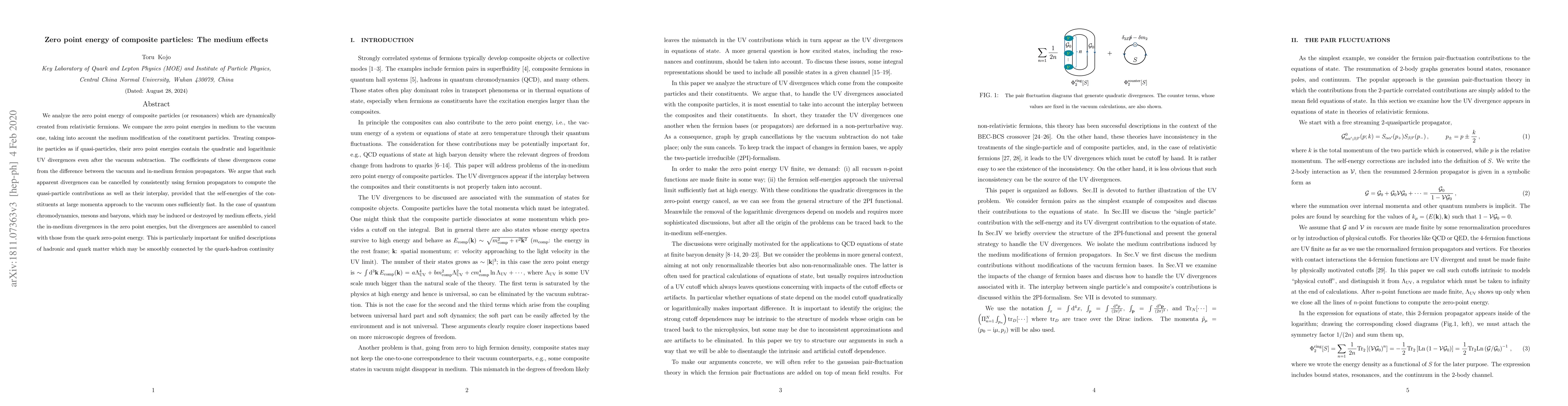 Researchers analyzed zero point energy of composite particles in a medium, finding that divergences can be canceled by using consistent fermion propagators, enabling unified descriptions of hadronic and quark matter.