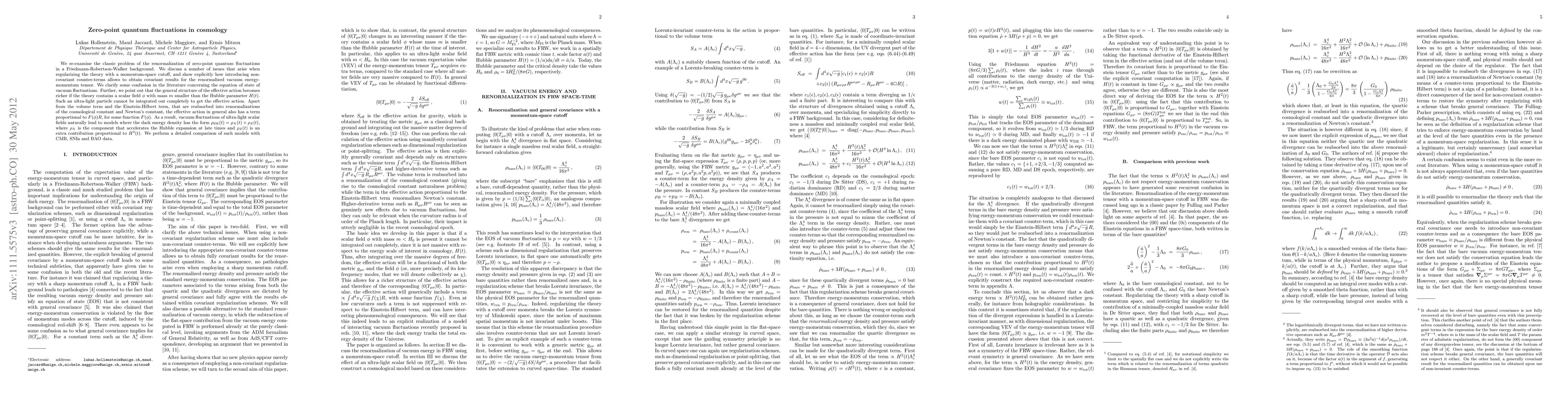 This paper re-examines zero-point quantum fluctuations in cosmology, clarifying issues in their renormalization using momentum-space cutoff and non-covariant counter-terms. It reveals that ultra-light scalar fields, with mass smaller than the Hubble parameter, enrich the effective action, leading to dark energy models with components proportional to H^2(t). The paper compares these models with CMB, SNIa, and BAO data.