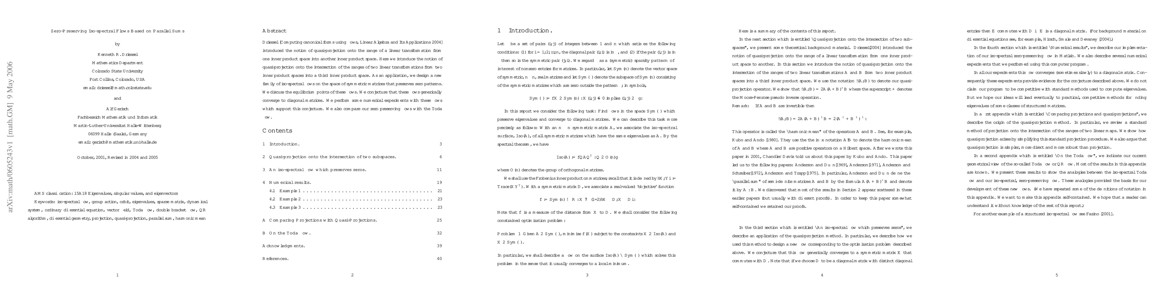 Driessel ["Computing canonical forms using flows", Linear Algebra and Its Applications 2004] introduced the notion of quasi-projection onto the range of a linear transformation from one inner product space into another inner product space. Here we introduce the notion of quasi-projection onto the intersection of the ranges of two linear transformations from two inner product spaces into a third inner product space. As an application, we design a new family of iso-spectral flows on the space of symmetric matrices that preserves zero patterns. We discuss the equilibrium points of these flows. We conjecture that these flows generically converge to diagonal matrices. We perform some numerical experiments with these flows which support this conjecture. We also compare our zero preserving flows with the Toda flow.