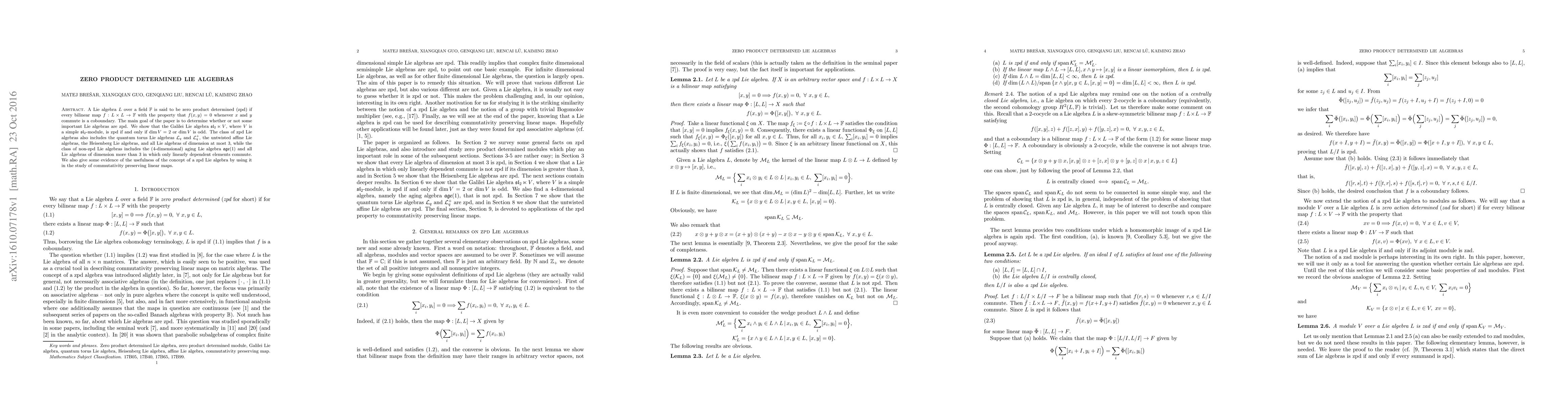 The construction of a new class of zero product determined Lie algebras using functional identities and computational methods.