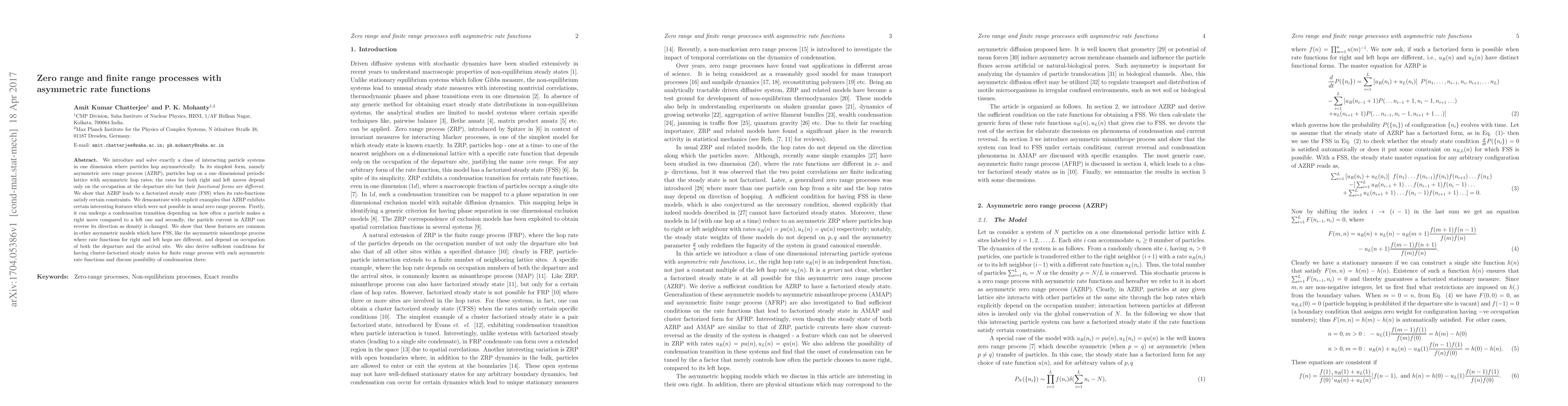 This research introduces an asymmetric zero range process (AZRP) on a one-dimensional lattice, demonstrating unique features like condensation transitions and reversible particle currents under specific rate-function constraints. It also extends these findings to other asymmetric models with factorized steady states, discussing cluster-factorized states and potential condensation in finite range processes with asymmetric rate functions.