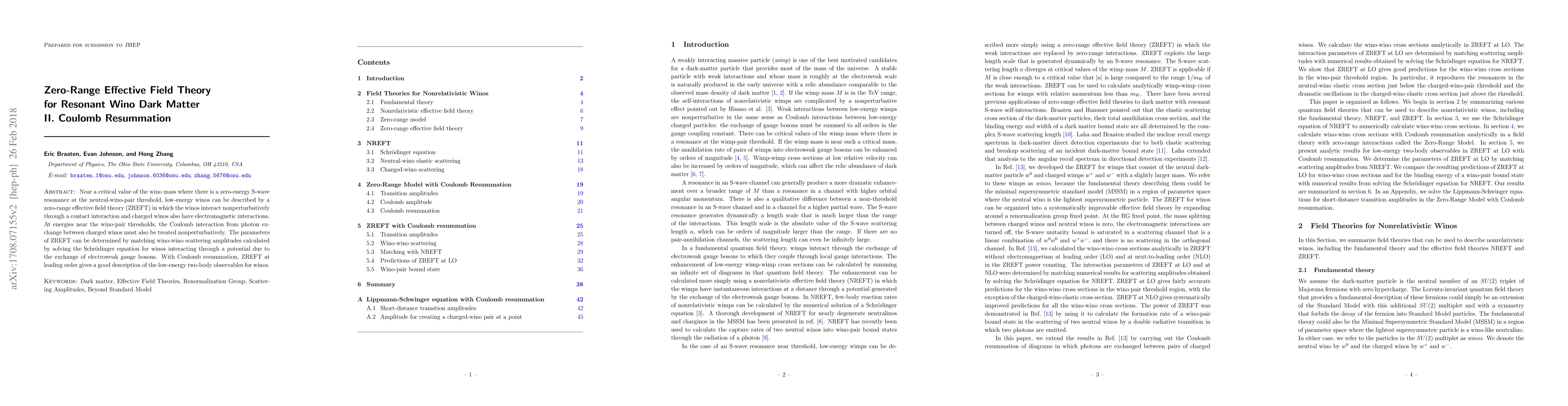 This paper develops a zero-range effective field theory (ZREFT) for wino dark matter near a resonant mass, incorporating Coulomb interactions. It shows that ZREFT, with resummation, accurately describes low-energy wino-wino scattering near the neutral-wino-pair threshold.