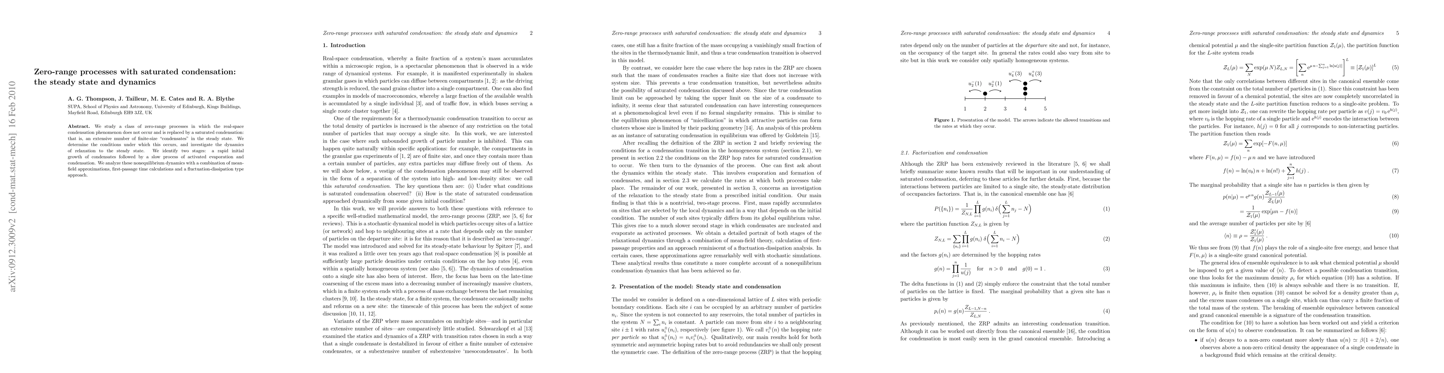 This paper explores zero-range processes featuring saturated condensation, where extensive finite-size "condensates" form instead of real-space condensation. It investigates the dynamics of relaxation to the steady state, identifying rapid initial condensate growth followed by a slow activated evaporation and condensation process.