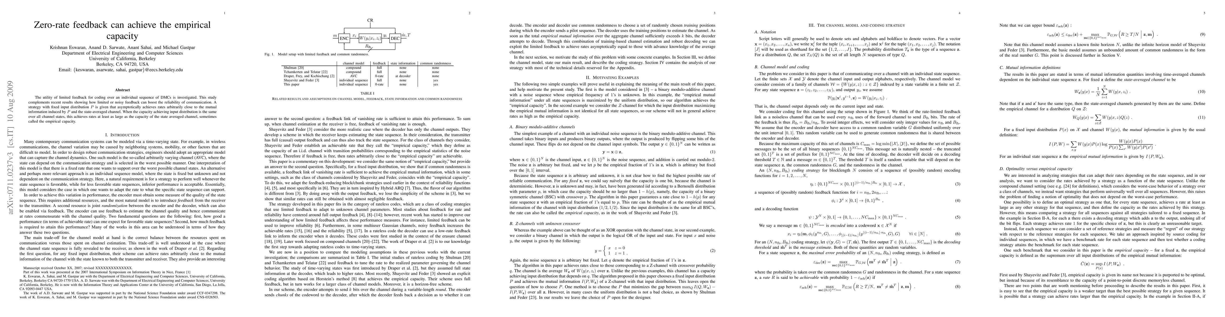 A new strategy achieves rates arbitrarily close to mutual information for coding over DMCs with limited feedback. This surpasses the empirical capacity in some cases.