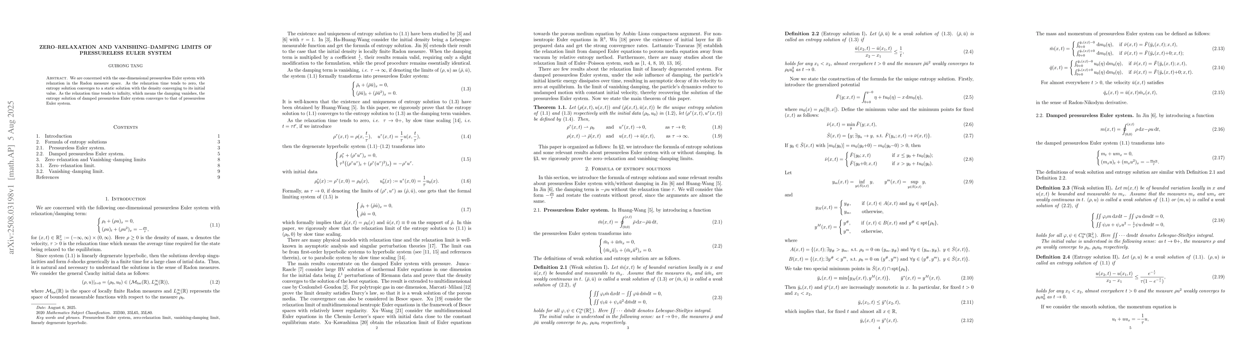 We are concerned with the one-dimensional pressureless Euler system with relaxation in the Radon measure space. As the relaxation time tends to zero, the entropy solution converges to a static solution with the density converging to its initial value. As the relaxation time tends to infinity, which means the damping vanishes, the entropy solution of damped pressureless Euler system converges to that of pressureless Euler system.