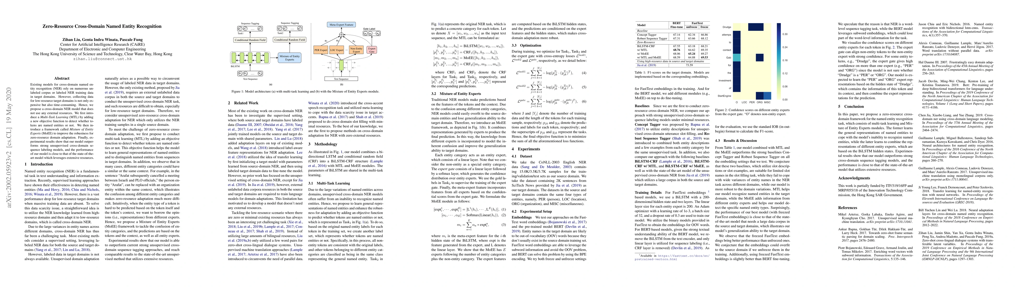 This paper proposes a zero-resource cross-domain named entity recognition (NER) model using Multi-Task Learning and Mixture of Entity Experts, achieving competitive performance without relying on external data, thus addressing the challenge of low-resource target domains. Experimental results demonstrate superior performance compared to unsupervised models.
