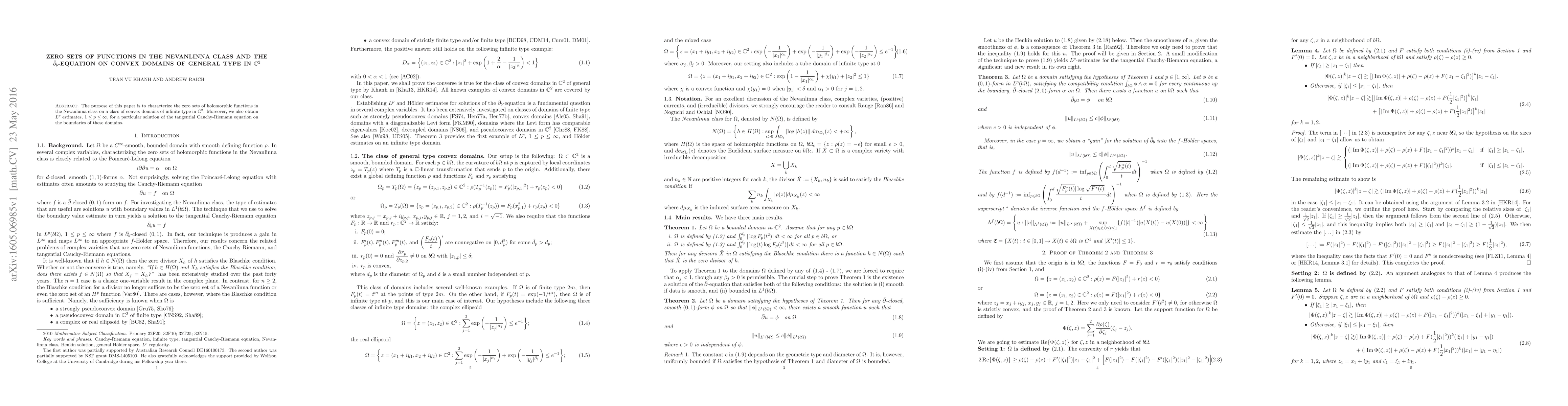 The purpose of this paper is to characterize the zero sets of holomorphic functions in the Nevanlinna class on a class of convex domains of infinite type in $\mathbb{C}^2$. Moreover, we also obtain $L^p$ estimates, $1 \leq p \leq \infty$, for a particular solution of the tangential Cauchy-Riemann equation on the boundaries of these domains.