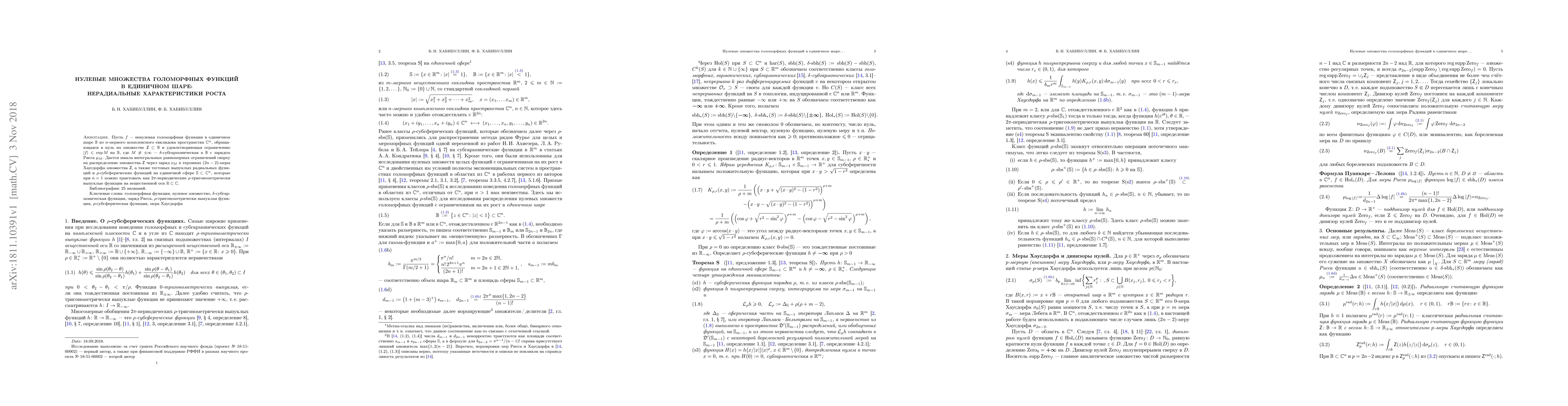 This paper investigates the zero sets of holomorphic functions in the unit ball of $\mathbb C^n$ that vanish on a set ${\sf Z}$ and satisfy growth constraints. It provides integral constraints on the distribution of ${\sf Z}$ in terms of Hausdorff measure and explores the implications of convex radial functions and $\rho$-subspherical functions.