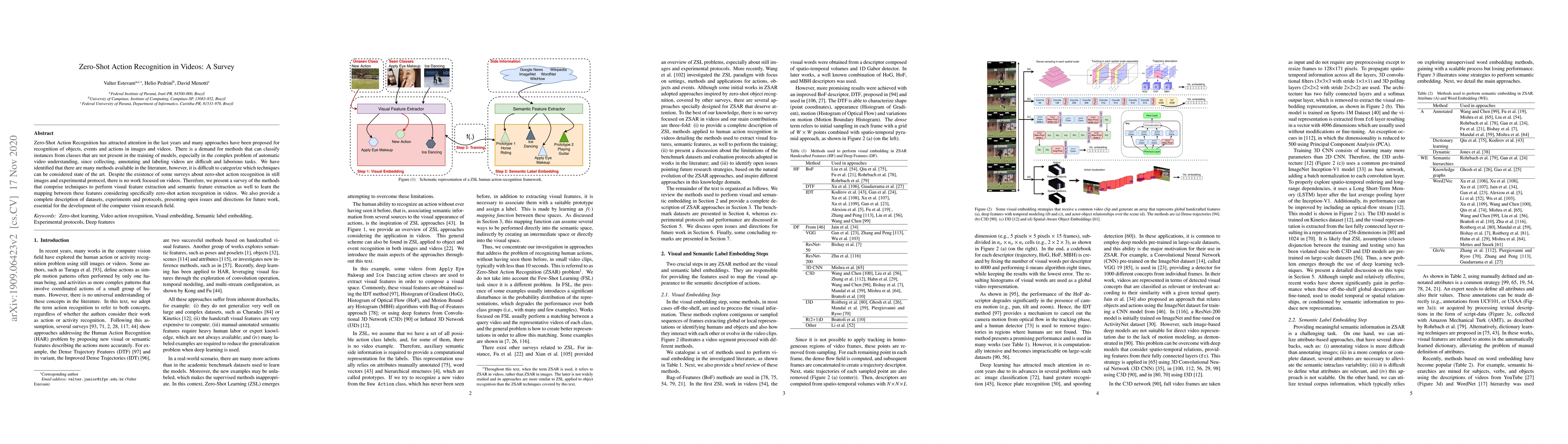 This paper surveys methods for zero-shot action recognition in videos, focusing on techniques for visual and semantic feature extraction and their mapping. It highlights the challenges and current state of the art, while also discussing open issues and future research directions in this field.