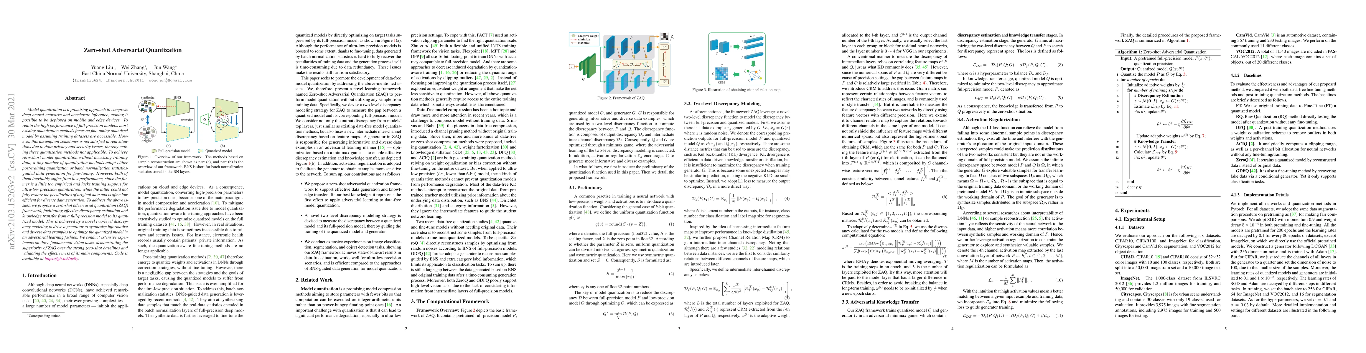 adversarial quantization (ZAQ) framework, facilitating effective discrepancy