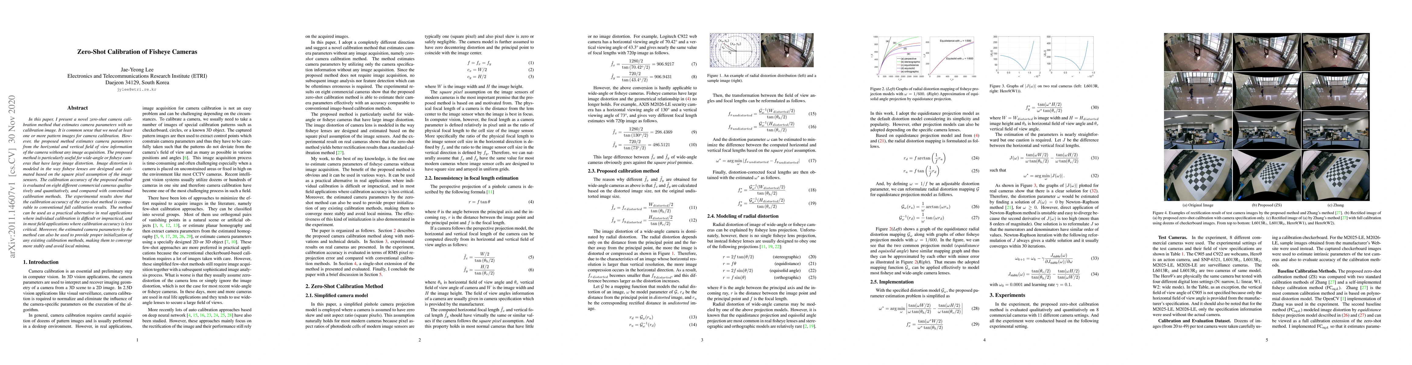 Researchers developed a zero-shot camera calibration method that estimates camera parameters without requiring calibration images, making it suitable for wide-angle or fisheye cameras with large image distortion.