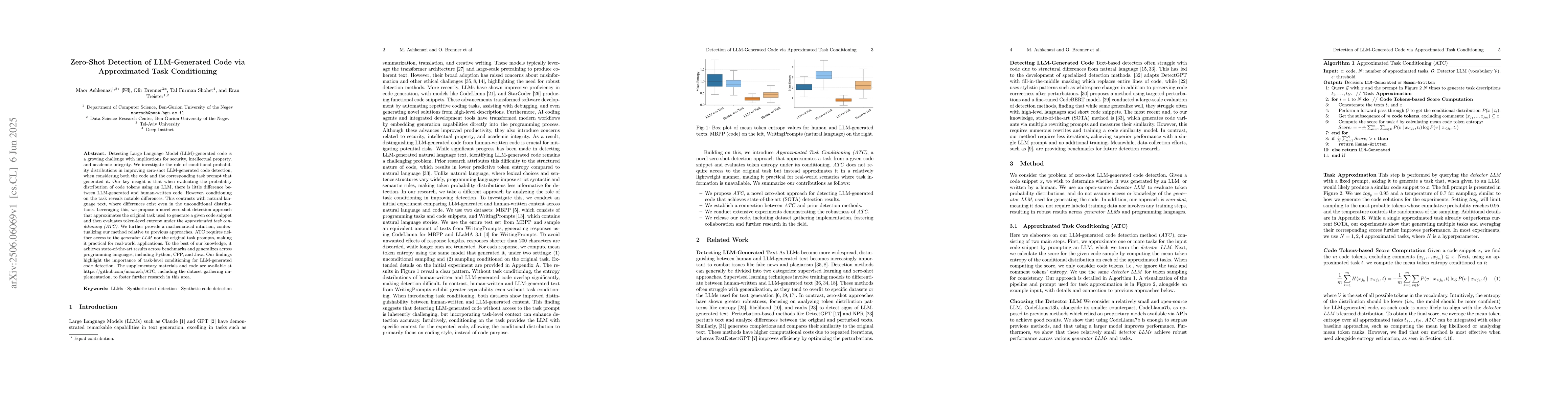 The introduction of Approximated Task Conditioning (ATC) for zero-shot detection of LLM-generated code, which evaluates token-level entropy under approximated task conditions.