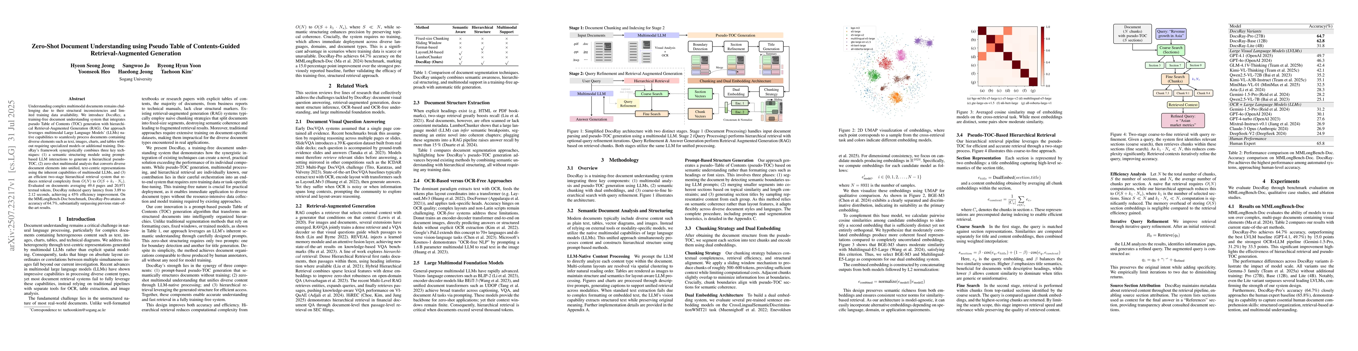 Understanding complex multimodal documents remains challenging due to their structural inconsistencies and limited training data availability. We introduce \textit{DocsRay}, a training-free document understanding system that integrates pseudo Table of Contents (TOC) generation with hierarchical Retrieval-Augmented Generation (RAG). Our approach leverages multimodal Large Language Models' (LLMs) native capabilities to seamlessly process documents containing diverse elements such as text, images, charts, and tables without requiring specialized models or additional training. DocsRay's framework synergistically combines three key techniques: (1) a semantic structuring module using prompt-based LLM interactions to generate a hierarchical pseudo-TOC, (2) zero-shot multimodal analysis that converts diverse document elements into unified, text-centric representations using the inherent capabilities of multimodal LLMs, and (3) an efficient two-stage hierarchical retrieval system that reduces retrieval complexity from $O(N)$ to $O(S + k_1 \cdot N_s)$. Evaluated on documents averaging 49.4 pages and 20,971 textual tokens, DocsRay reduced query latency from 3.89 to 2.12 seconds, achieving a 45% efficiency improvement. On the MMLongBench-Doc benchmark, DocsRay-Pro attains an accuracy of 64.7%, substantially surpassing previous state-of-the-art results.