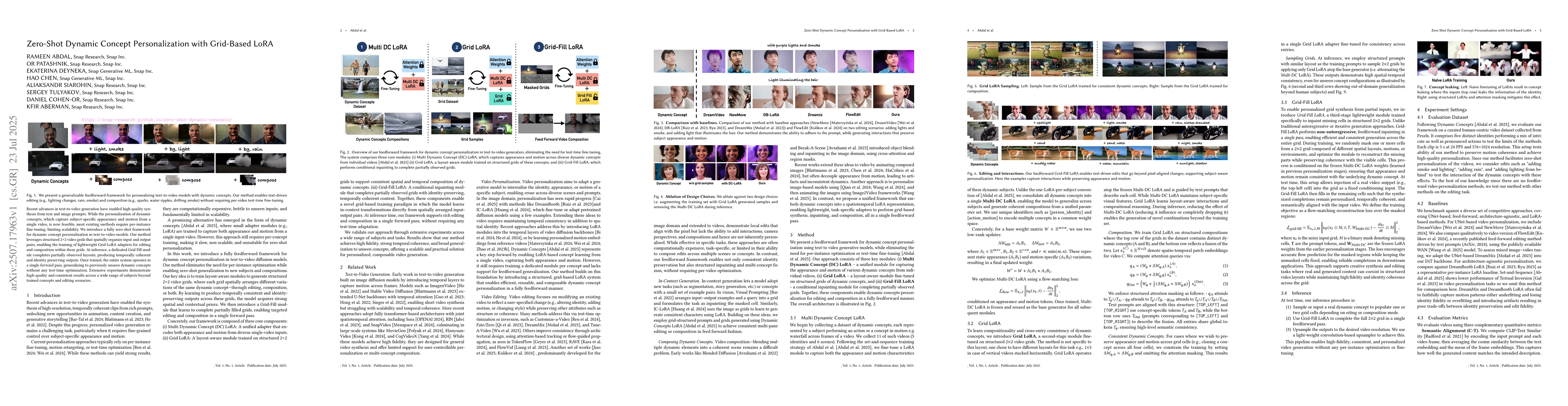 Recent advances in text-to-video generation have enabled high-quality synthesis from text and image prompts. While the personalization of dynamic concepts, which capture subject-specific appearance and motion from a single video, is now feasible, most existing methods require per-instance fine-tuning, limiting scalability. We introduce a fully zero-shot framework for dynamic concept personalization in text-to-video models. Our method leverages structured 2x2 video grids that spatially organize input and output pairs, enabling the training of lightweight Grid-LoRA adapters for editing and composition within these grids. At inference, a dedicated Grid Fill module completes partially observed layouts, producing temporally coherent and identity preserving outputs. Once trained, the entire system operates in a single forward pass, generalizing to previously unseen dynamic concepts without any test-time optimization. Extensive experiments demonstrate high-quality and consistent results across a wide range of subjects beyond trained concepts and editing scenarios.