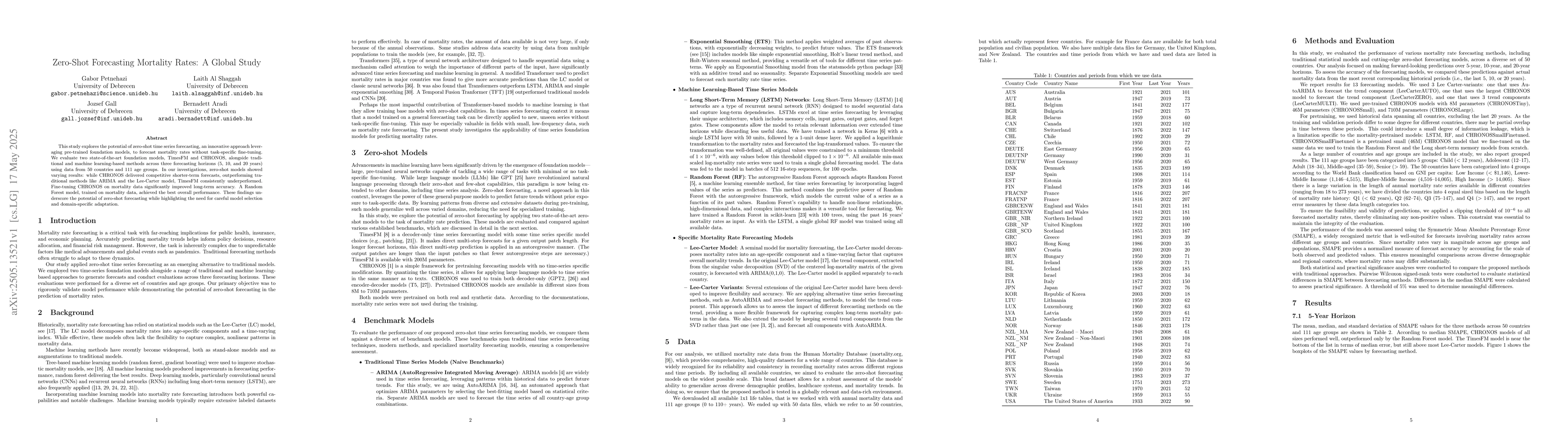 Researchers used zero-shot forecasting models to predict global mortality rates with varying results, finding CHRONOS outperformed traditional methods in the short-term while a fine-tuned model improved long-term accuracy.
