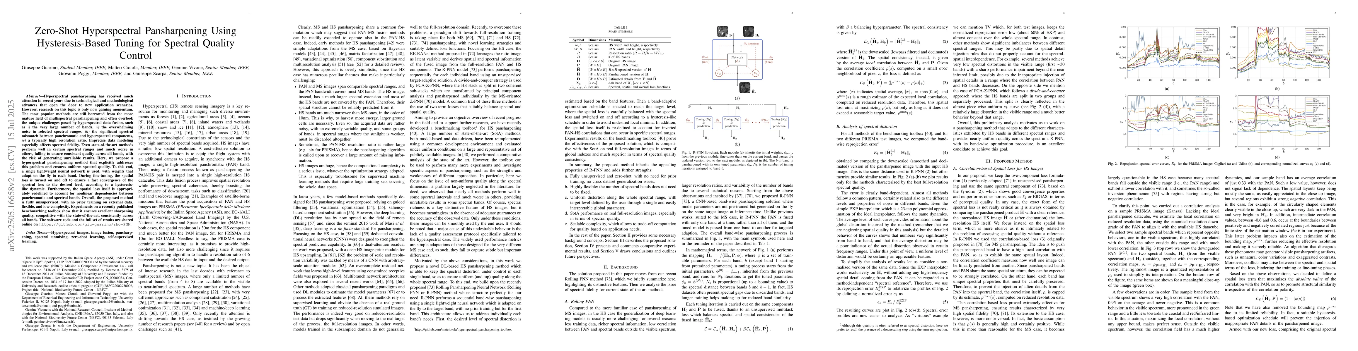 The research proposes a hyperspectral pansharpening method using a single lightweight neural network with adaptive weights for each band. It employs a hysteresis-like dynamic to control the convergence of the spectral loss and redefines the spatial loss to account for nonlinear dependencies between panchromatic and spectral bands.