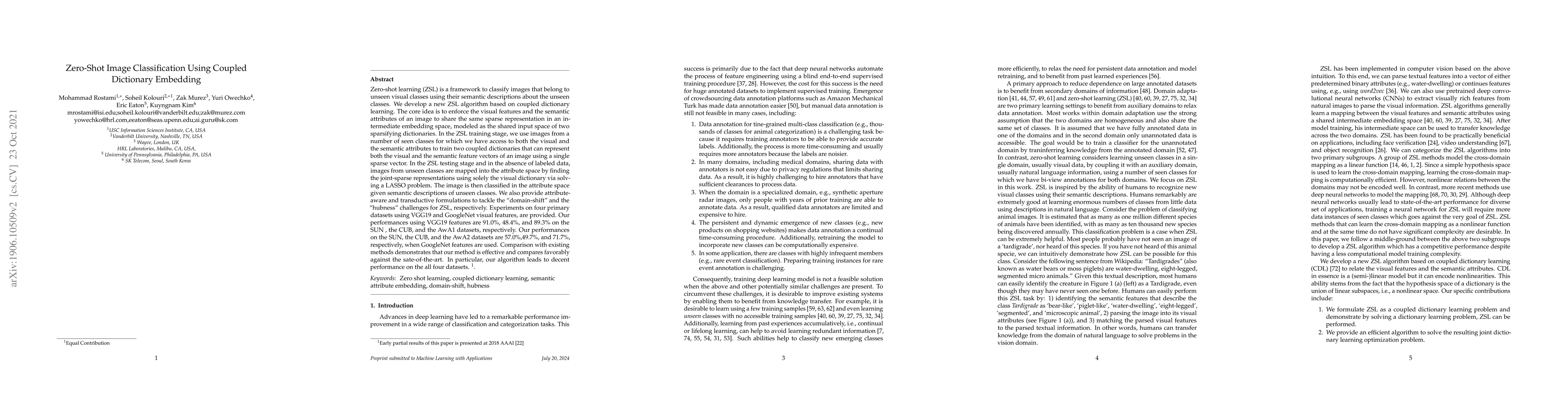 Zero-shot learning (ZSL) is a framework to classify images belonging to unseen classes based on solely semantic information about these unseen classes. In this paper, we propose a new ZSL algorithm using coupled dictionary learning. The core idea is that the visual features and the semantic attributes of an image can share the same sparse representation in an intermediate space. We use images from seen classes and semantic attributes from seen and unseen classes to learn two dictionaries that can represent sparsely the visual and semantic feature vectors of an image. In the ZSL testing stage and in the absence of labeled data, images from unseen classes can be mapped into the attribute space by finding the joint sparse representation using solely the visual data. The image is then classified in the attribute space given semantic descriptions of unseen classes. We also provide an attribute-aware formulation to tackle domain shift and hubness problems in ZSL. Extensive experiments are provided to demonstrate the superior performance of our approach against the state of the art ZSL algorithms on benchmark ZSL datasets.
