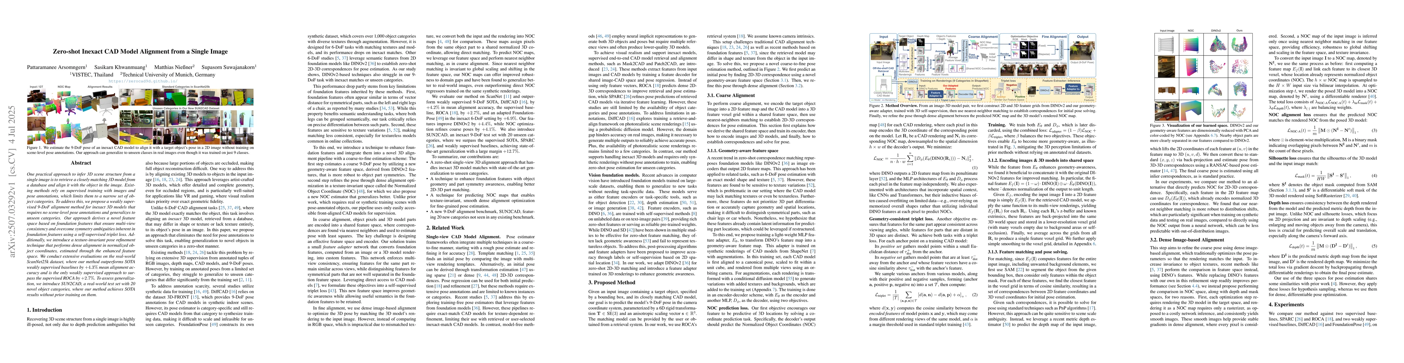 One practical approach to infer 3D scene structure from a single image is to retrieve a closely matching 3D model from a database and align it with the object in the image. Existing methods rely on supervised training with images and pose annotations, which limits them to a narrow set of object categories. To address this, we propose a weakly supervised 9-DoF alignment method for inexact 3D models that requires no pose annotations and generalizes to unseen categories. Our approach derives a novel feature space based on foundation features that ensure multi-view consistency and overcome symmetry ambiguities inherent in foundation features using a self-supervised triplet loss. Additionally, we introduce a texture-invariant pose refinement technique that performs dense alignment in normalized object coordinates, estimated through the enhanced feature space. We conduct extensive evaluations on the real-world ScanNet25k dataset, where our method outperforms SOTA weakly supervised baselines by +4.3% mean alignment accuracy and is the only weakly supervised approach to surpass the supervised ROCA by +2.7%. To assess generalization, we introduce SUN2CAD, a real-world test set with 20 novel object categories, where our method achieves SOTA results without prior training on them.