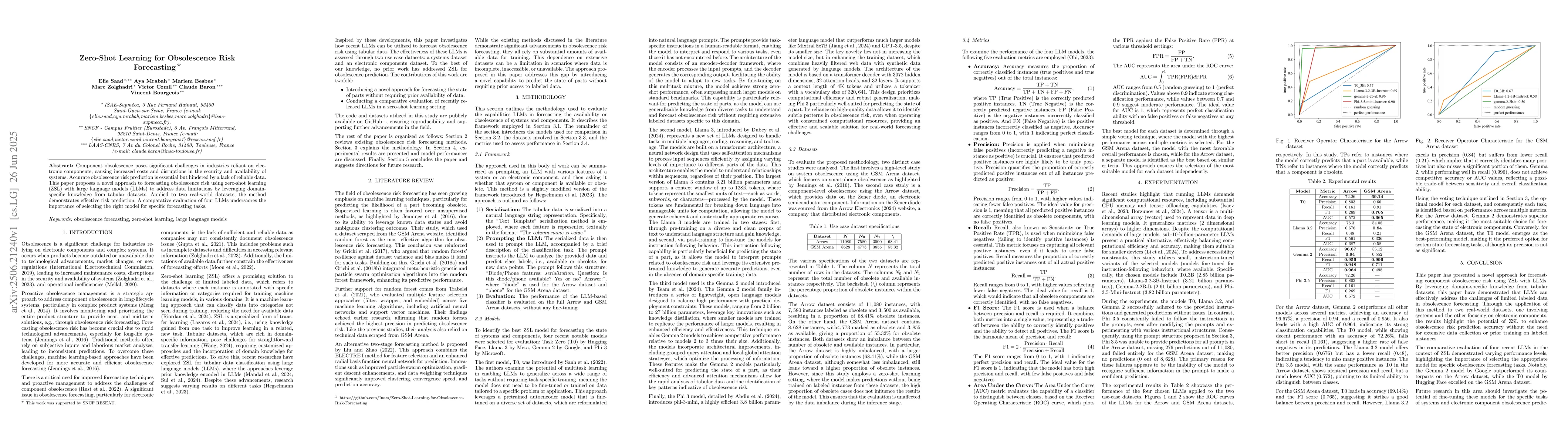 This research introduces a novel method using zero-shot learning (ZSL) with large language models (LLMs) to predict electronic component obsolescence risk, addressing data scarcity issues. The approach, tested on real-world datasets, shows effective risk forecasting, highlighting the significance of choosing the appropriate LLM for specific tasks.