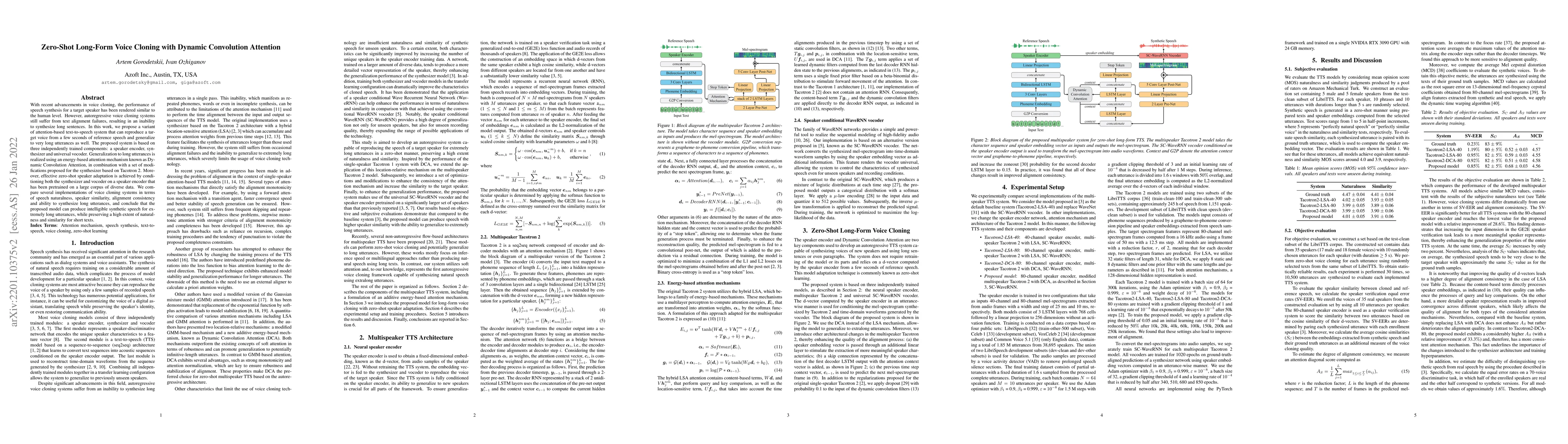 This paper proposes a zero-shot long-form voice cloning system using Dynamic Convolution Attention, which can reproduce a target voice from a few seconds of reference speech and generalize to long utterances. The system employs a speaker encoder, synthesizer, and universal vocoder, achieving effective zero-shot adaptation and high-quality synthesis for both long and short texts.