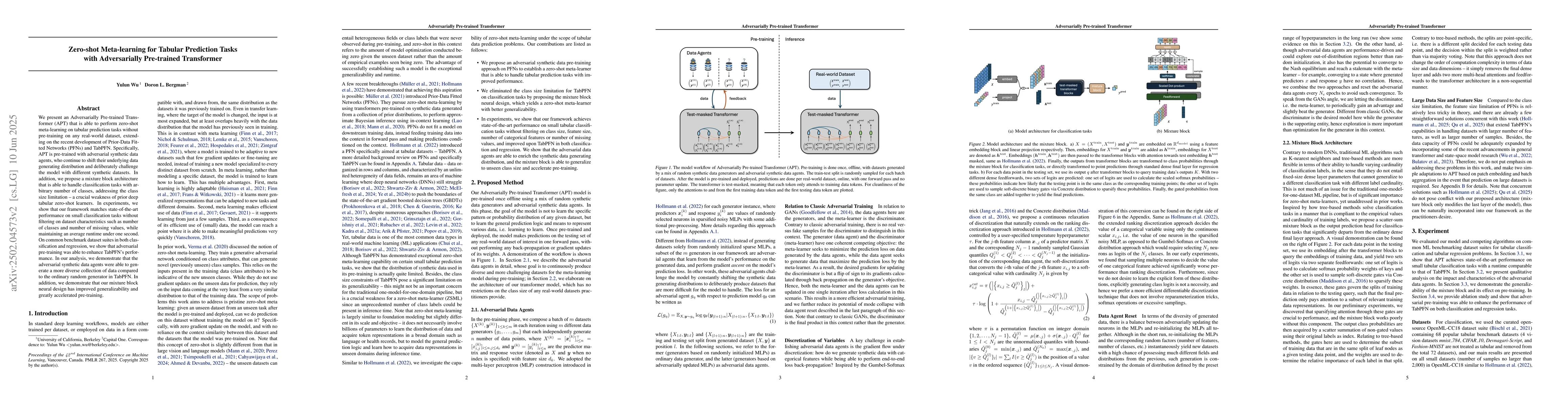 Researchers developed an Adversarially Pre-trained Transformer (APT) that can perform zero-shot learning on tabular prediction tasks without prior training, achieving state-of-the-art performance with improved generalizability and speed.