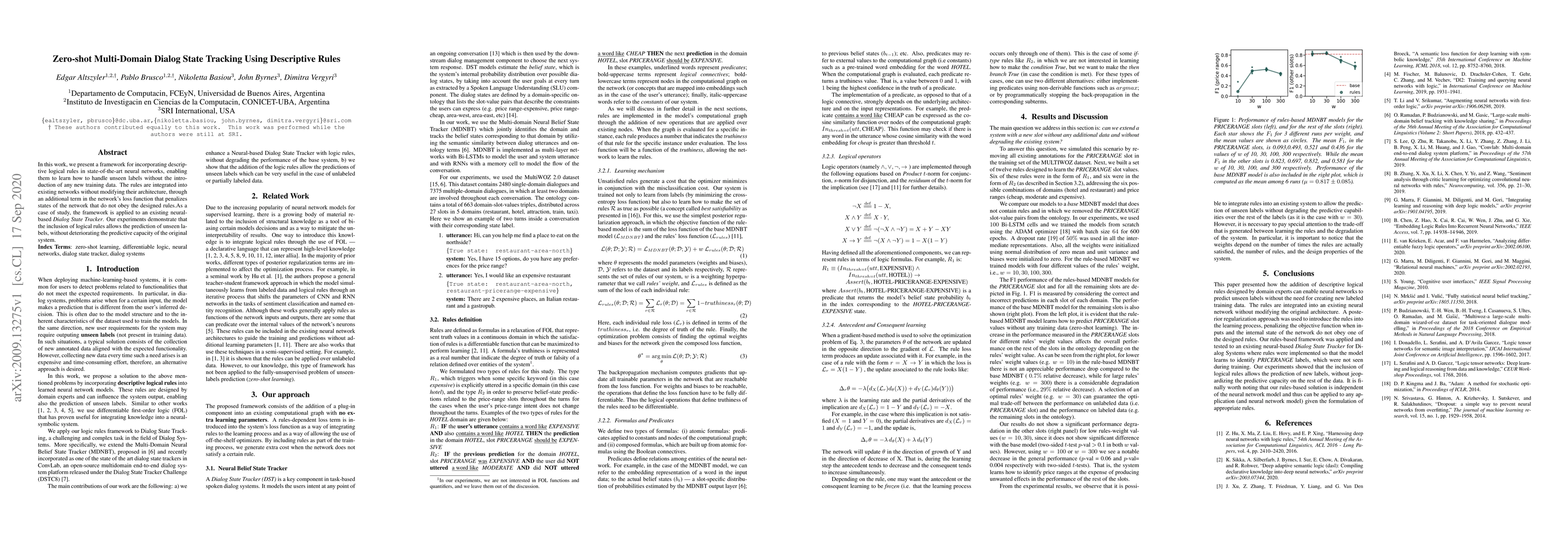 In this work, we present a framework for incorporating descriptive logical rules in state-of-the-art neural networks, enabling them to learn how to handle unseen labels without the introduction of any new training data. The rules are integrated into existing networks without modifying their architecture, through an additional term in the network's loss function that penalizes states of the network that do not obey the designed rules. As a case of study, the framework is applied to an existing neural-based Dialog State Tracker. Our experiments demonstrate that the inclusion of logical rules allows the prediction of unseen labels, without deteriorating the predictive capacity of the original system.