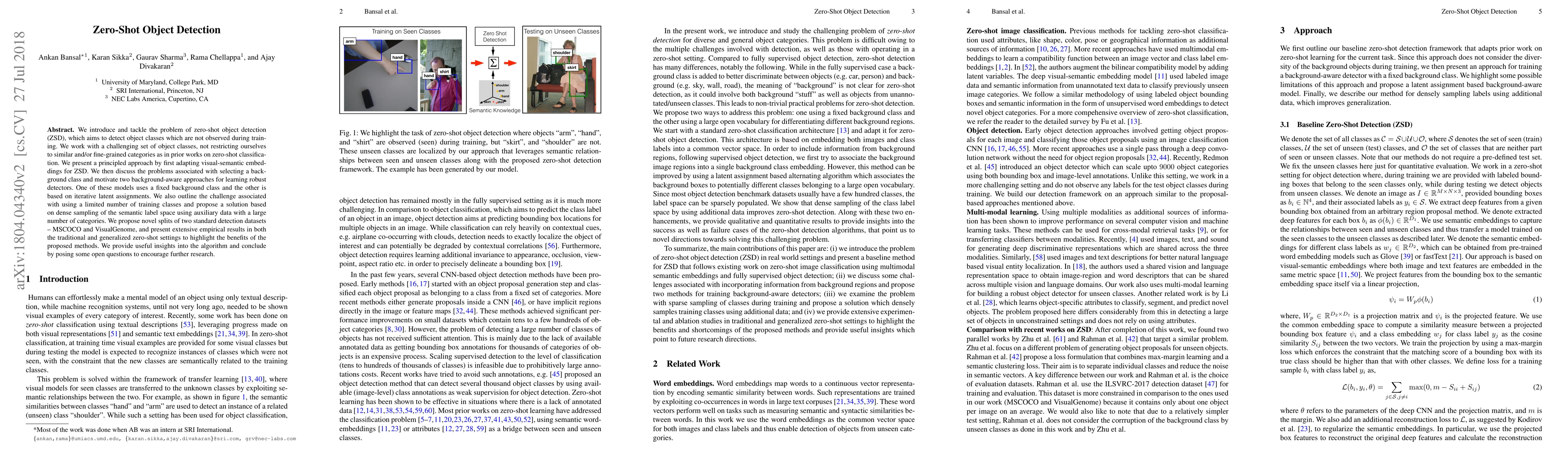 This paper tackles zero-shot object detection, aiming to identify object classes unseen during training. It proposes a method to adapt visual-semantic embeddings and introduces two background-aware approaches for robust detection, addressing the challenge of limited training classes with dense sampling of the semantic label space.