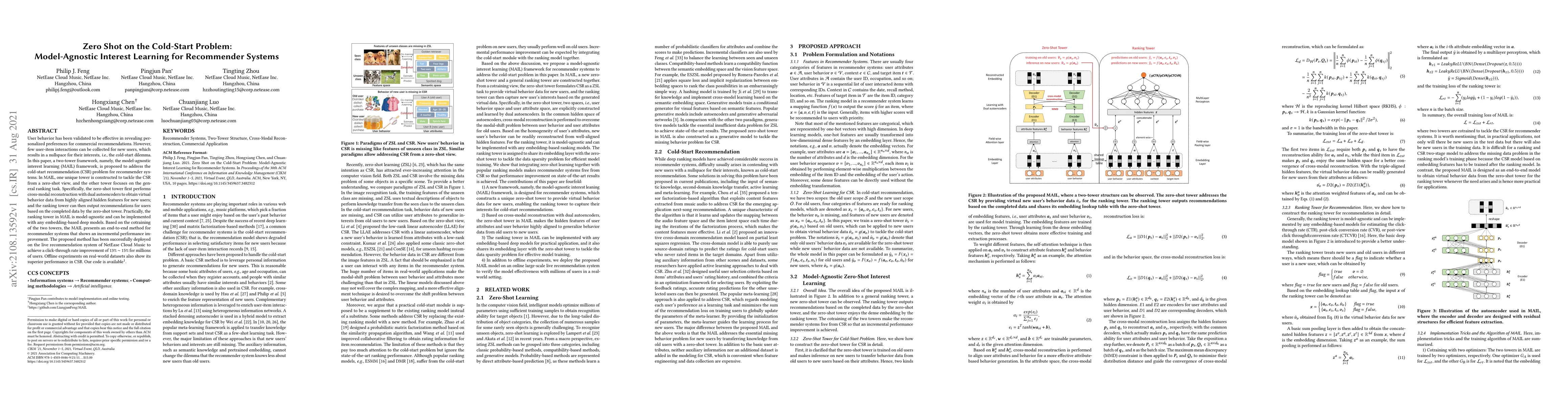 User behavior has been validated to be effective in revealing personalized preferences for commercial recommendations. However, few user-item interactions can be collected for new users, which results in a null space for their interests, i.e., the cold-start dilemma. In this paper, a two-tower framework, namely, the model-agnostic interest learning (MAIL) framework, is proposed to address the cold-start recommendation (CSR) problem for recommender systems. In MAIL, one unique tower is constructed to tackle the CSR from a zero-shot view, and the other tower focuses on the general ranking task. Specifically, the zero-shot tower first performs cross-modal reconstruction with dual auto-encoders to obtain virtual behavior data from highly aligned hidden features for new users; and the ranking tower can then output recommendations for users based on the completed data by the zero-shot tower. Practically, the ranking tower in MAIL is model-agnostic and can be implemented with any embedding-based deep models. Based on the co-training of the two towers, the MAIL presents an end-to-end method for recommender systems that shows an incremental performance improvement. The proposed method has been successfully deployed on the live recommendation system of NetEase Cloud Music to achieve a click-through rate improvement of 13% to 15% for millions of users. Offline experiments on real-world datasets also show its superior performance in CSR. Our code is available.