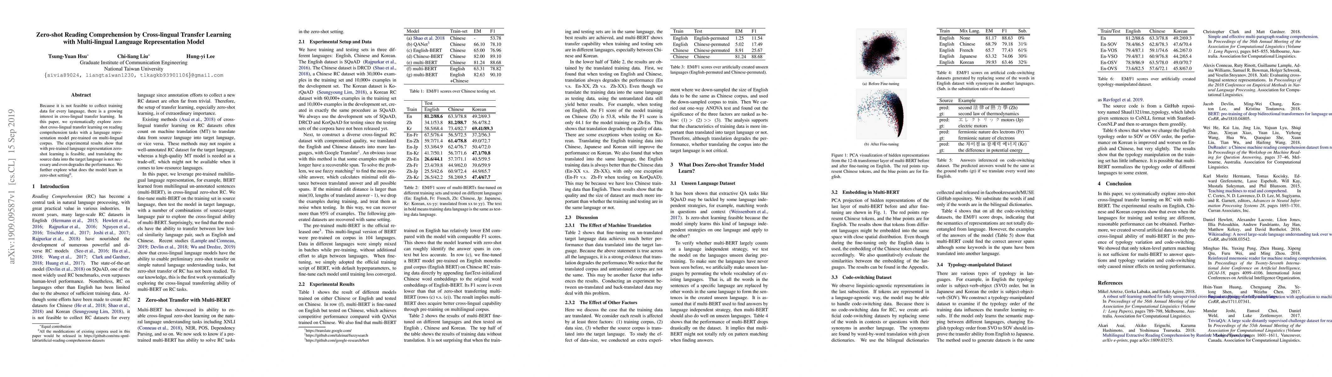 This paper investigates zero-shot cross-lingual transfer learning for reading comprehension using a pre-trained multi-lingual language representation model, demonstrating that translating source data is unnecessary and can degrade performance. The study reveals insights into what the model learns in a zero-shot setting.