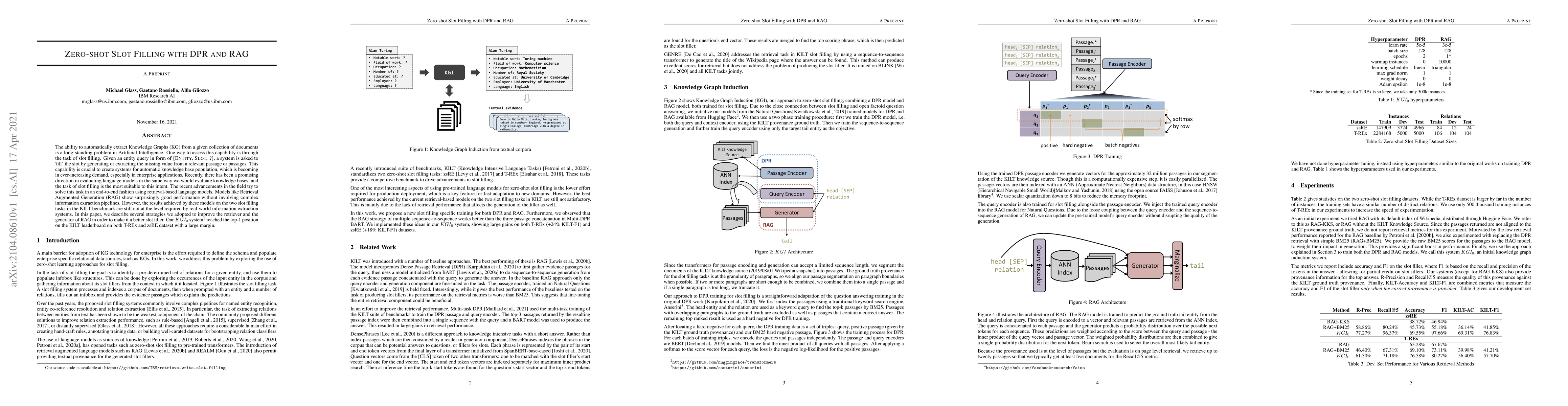 The ability to automatically extract Knowledge Graphs (KG) from a given collection of documents is a long-standing problem in Artificial Intelligence. One way to assess this capability is through the task of slot filling. Given an entity query in form of [Entity, Slot, ?], a system is asked to `fill' the slot by generating or extracting the missing value from a relevant passage or passages. This capability is crucial to create systems for automatic knowledge base population, which is becoming in ever-increasing demand, especially in enterprise applications. Recently, there has been a promising direction in evaluating language models in the same way we would evaluate knowledge bases, and the task of slot filling is the most suitable to this intent. The recent advancements in the field try to solve this task in an end-to-end fashion using retrieval-based language models. Models like Retrieval Augmented Generation (RAG) show surprisingly good performance without involving complex information extraction pipelines. However, the results achieved by these models on the two slot filling tasks in the KILT benchmark are still not at the level required by real-world information extraction systems. In this paper, we describe several strategies we adopted to improve the retriever and the generator of RAG in order to make it a better slot filler. Our KGI0 system (available at https://github.com/IBM/retrieve-write-slot-filling) reached the top-1 position on the KILT leaderboard on both T-REx and zsRE dataset with a large margin.