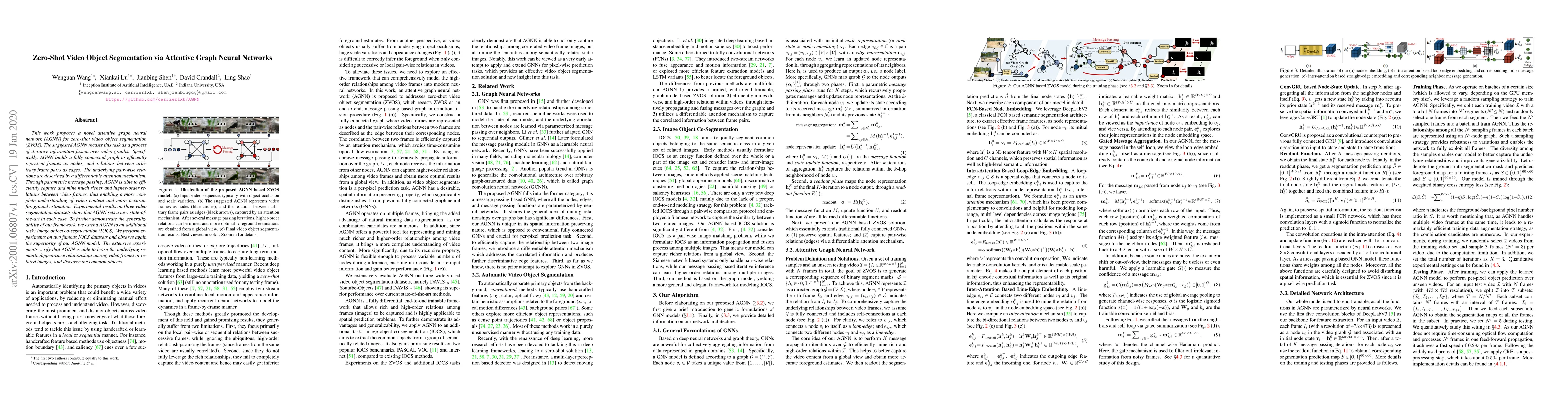 This paper introduces an attentive graph neural network (AGNN) for zero-shot video object segmentation, achieving state-of-the-art results by iteratively fusing information across video frames through a differentiable attention mechanism. AGNN also demonstrates effectiveness in image object co-segmentation tasks.