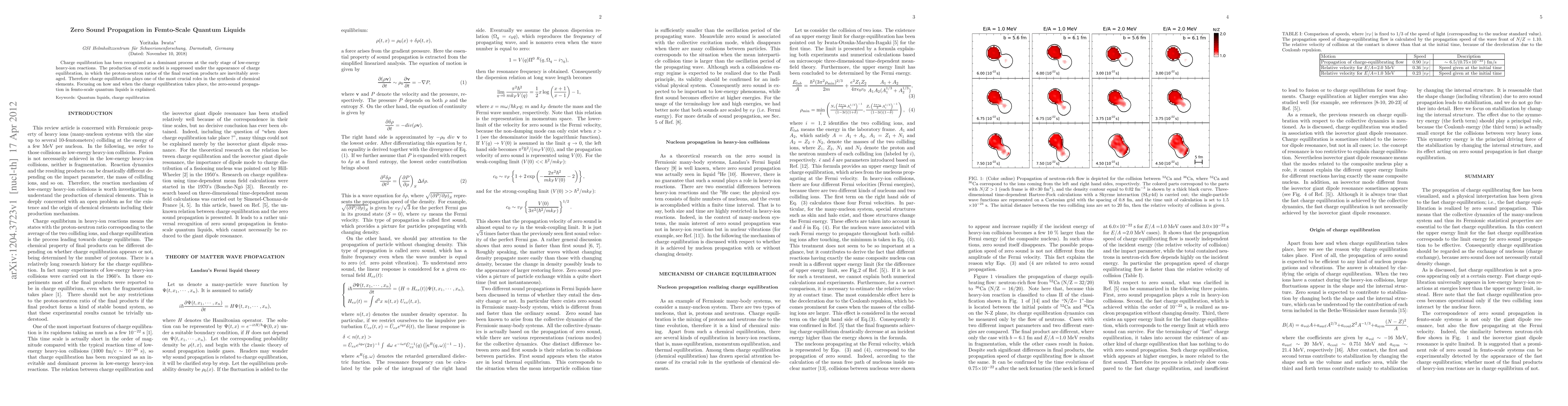 Charge equilibration has been recognized as a dominant process at the early stage of low-energy heavy-ion reactions. The production of exotic nuclei is suppressed under the appearance of charge equilibration, in which the proton-neutron ratios of the final reaction products are inevitably averaged. Therefore charge equilibration plays one of the most crucial roles in the synthesis of chemical elements. Focusing on how and when the charge equilibration takes place, the zero-sound propagation in femto-scale quantum liquids is explained.