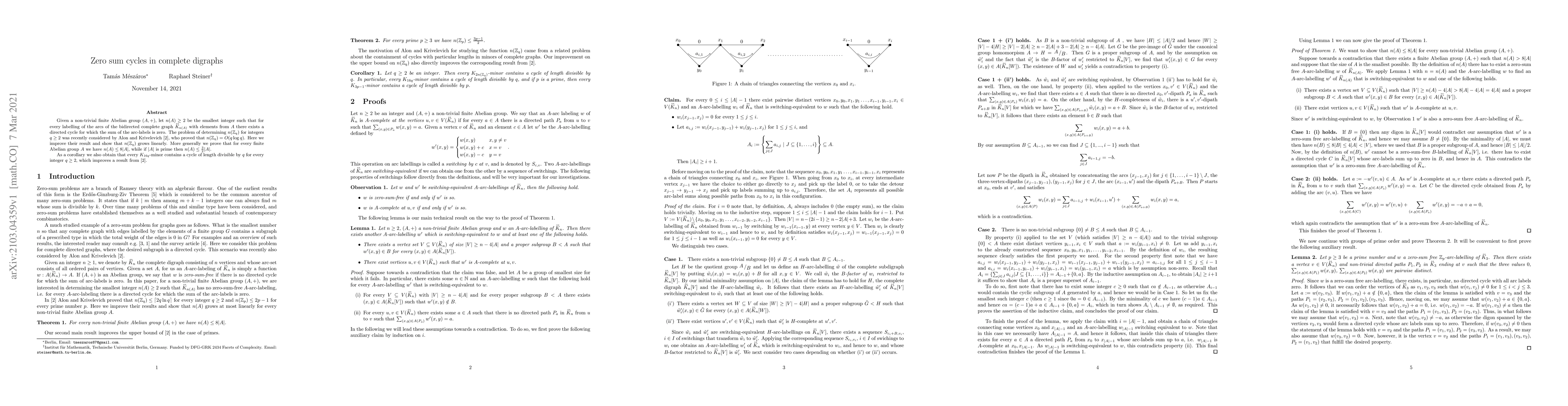 This research improves bounds on zero sum cycles in complete digraphs labeled by finite Abelian groups. It establishes that the smallest integer n(A) for which such cycles exist grows linearly with the group order, specifically n(A) ≤ 8|A| for any finite Abelian group A, and n(A) ≤ (3/2)|A| when A's order is prime. Additionally, it's proven that K_{16q}-minors contain cycles of lengths divisible by q for any integer q ≥ 2, enhancing previous results by Alon and Krivelevich.