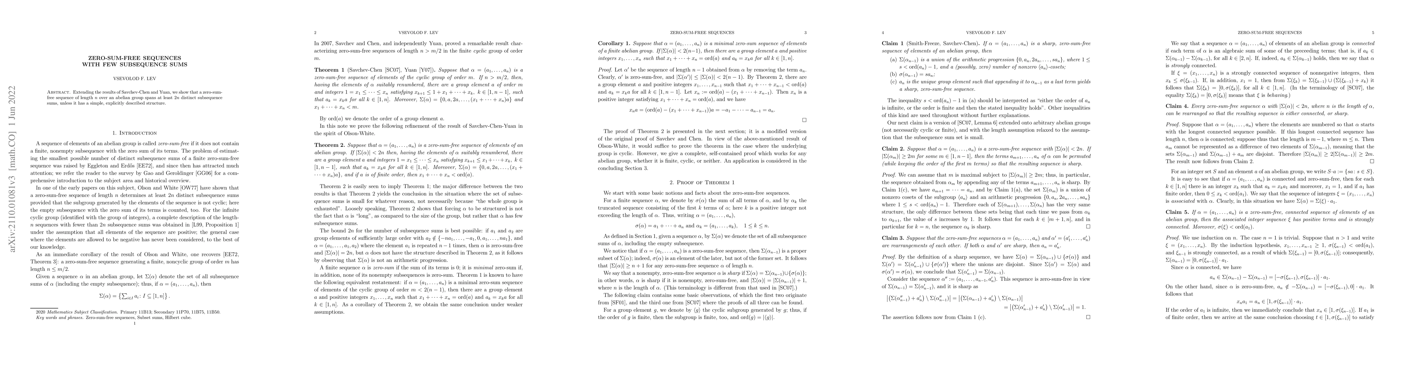We show that a zero-sum-free sequence of length $n$ over an abelian group spans at least $2n$ distinct subsequence sums, unless it possesses a rigid, easily-described structure.