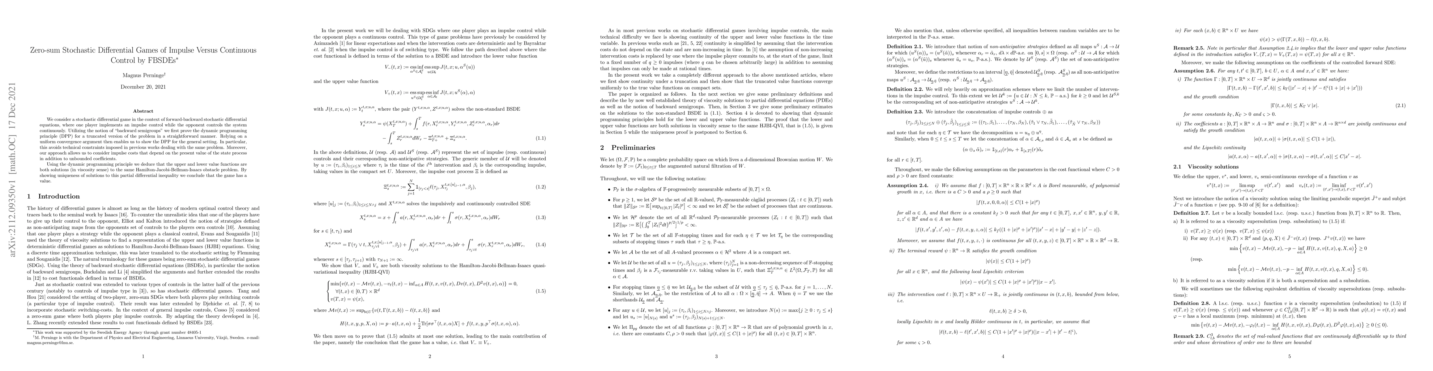 This paper proves a dynamic programming principle for a stochastic differential game with impulse and continuous controls using forward-backward stochastic differential equations (FBSDEs). It introduces 'backward semigroups' to simplify proof and extends it to general settings, handling unbounded coefficients and impulse costs dependent on state value. The value function, proven to satisfy a Hamilton-Jacobi-Bellman-Isaacs obstacle problem, ensures the game's value exists.