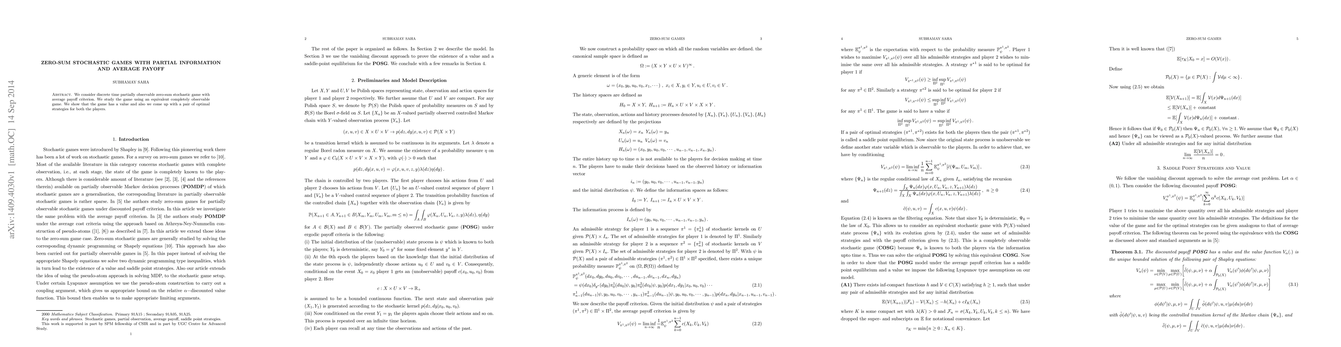 This paper studies a type of game where players make decisions with partial information to maximize their average payoff, finding optimal strategies for both players.